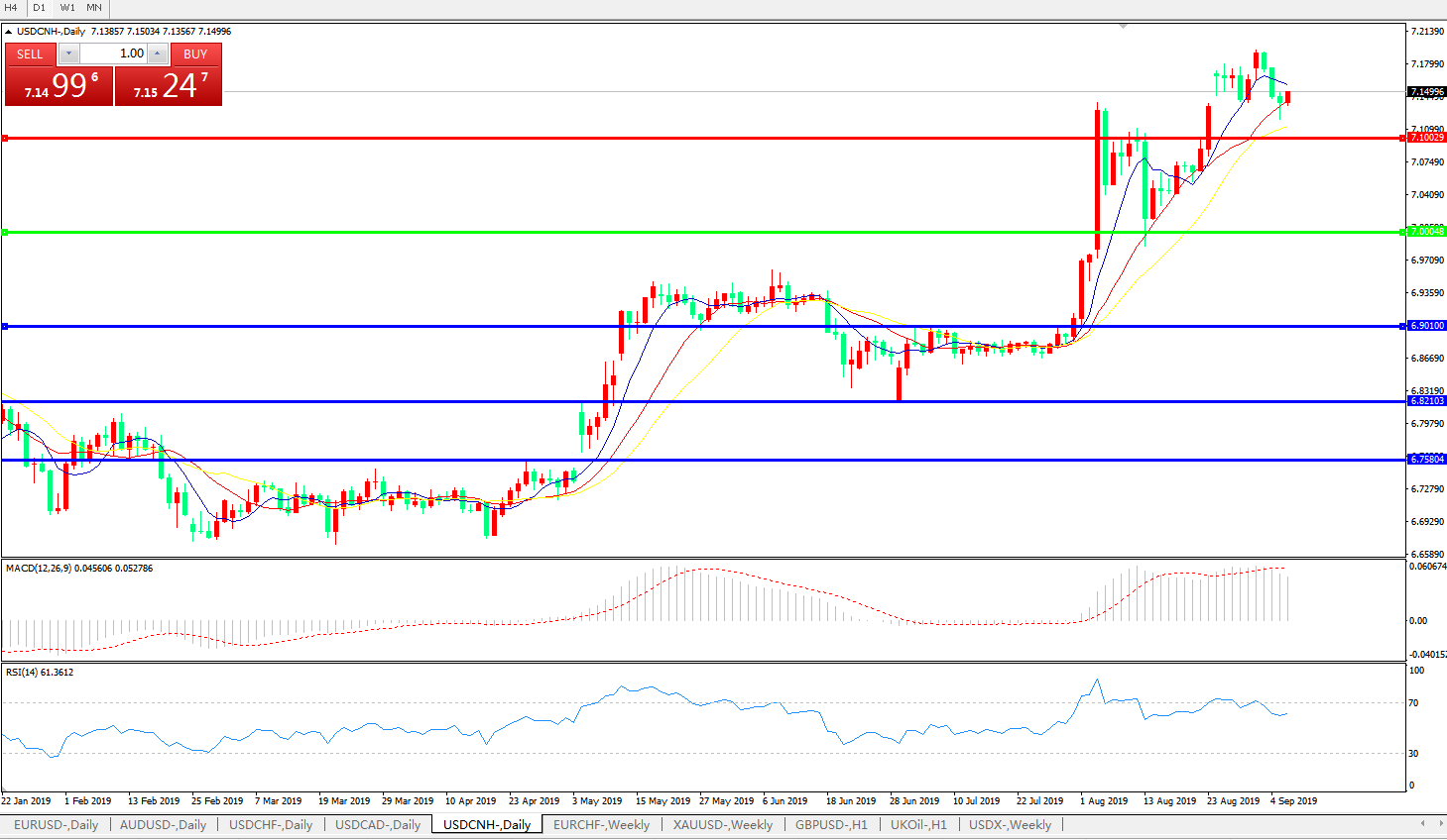 交易策略: 在7.0000之上,看涨,目标价位为7.1000,然后为7.2000。