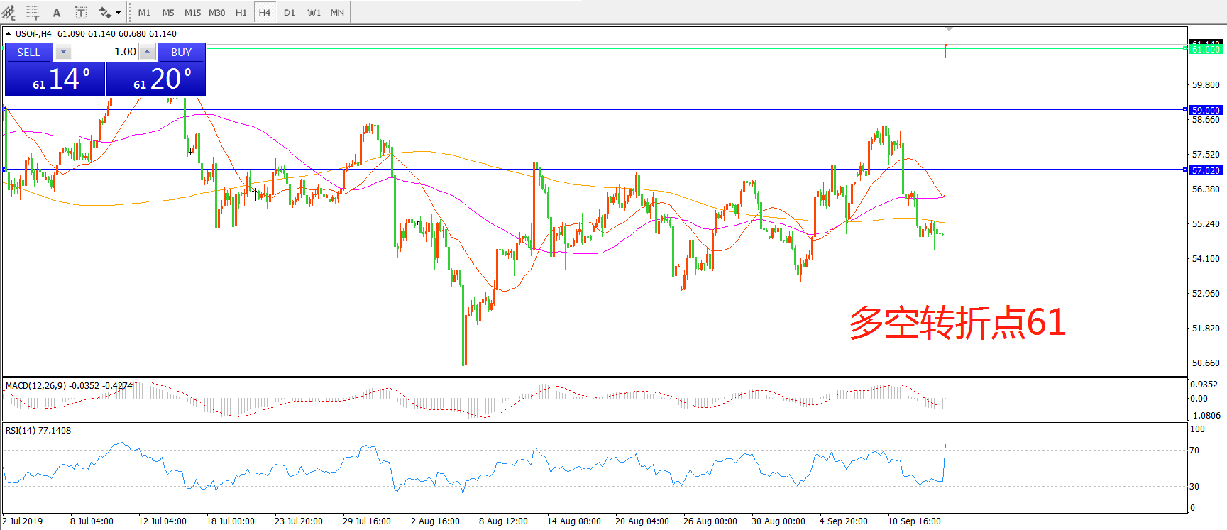 多空转折点:61.00