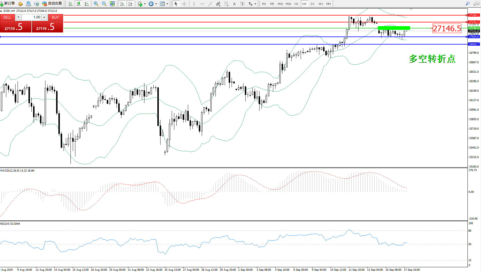 道琼斯指数9月17日(周二)收盘上涨32.20点,涨幅0.12%,报27109.03点。美国股市小幅收高,周末沙特阿拉伯最大炼油厂遭袭的影响消退,三大指数在盘中大部分时间涨跌互现,收盘时稳站在平盘之上,扳回周一的部份跌幅;美联储今日晚间结束为期两天的政策会议,预计将降息25个基点,为今年第二次降息。投资者还将等待美国货币政策将放宽到何种程度的线索,因美联储决策者对是否有必要进一步降息存在严重分歧。投资者等待美联储对未来货币政策立场的进一步指引。