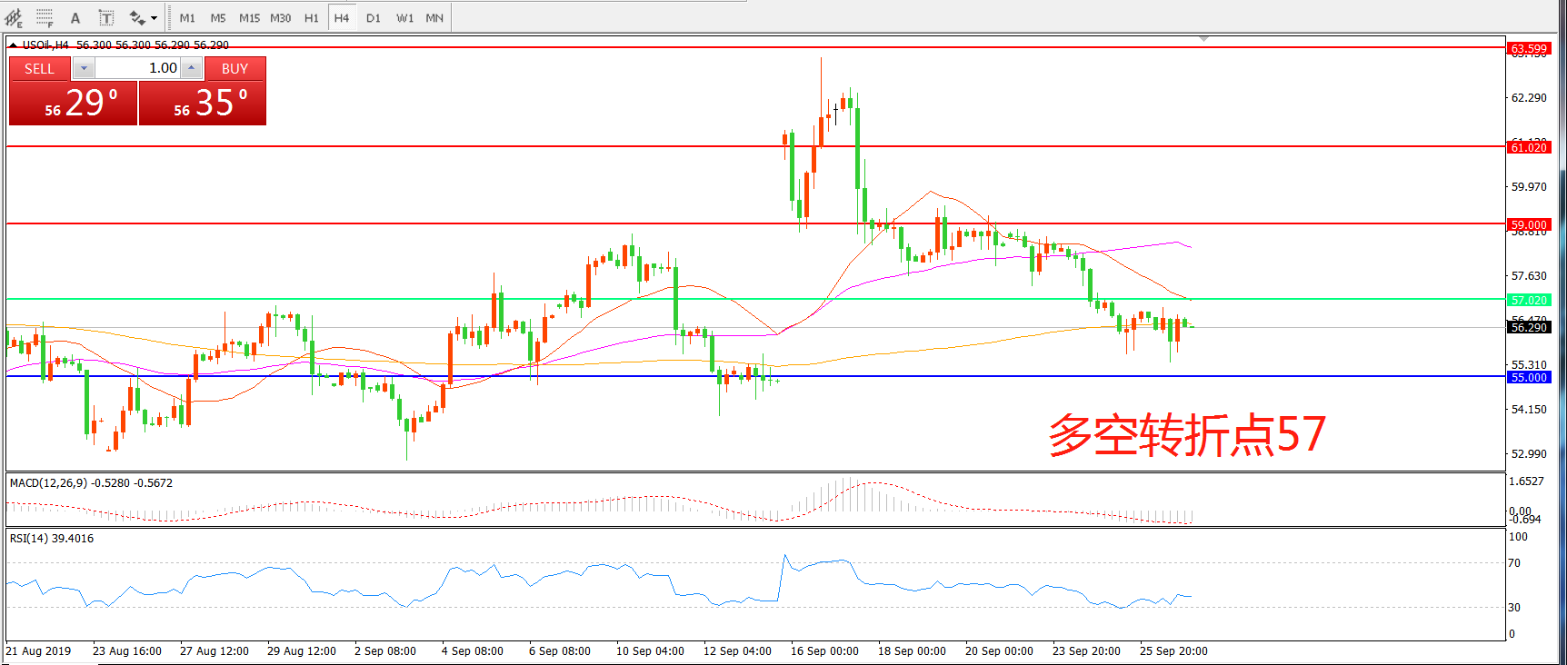交易策略: 在57.00之下看跌,目标55.00 52.50
