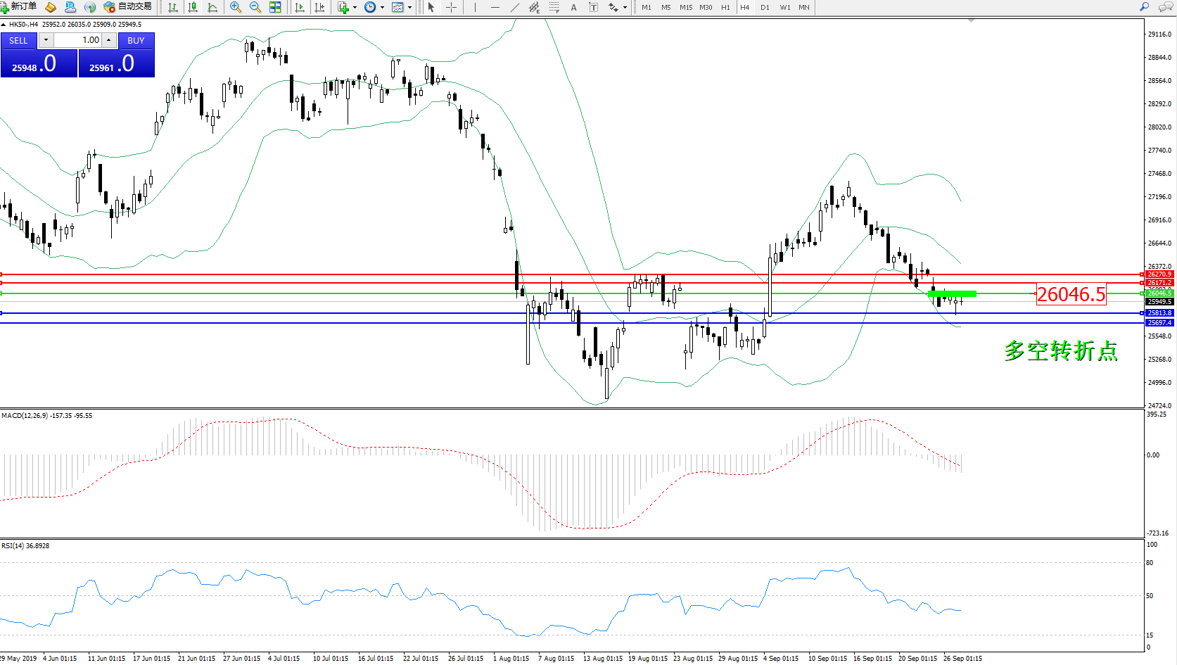 香港恒生指数927日(周五)收盘下跌87.12点,跌幅0.33%,报25954.81点;港股上午收升40点,午后持续弱势,曾经小幅倒跌27点。恒指曾连续第跌6日后反弹。而国企指数则连跌8日,累计跌幅超过518点,并创出近4年最长的跌势。市场关注美国总统特朗普受弹劾调查,加上英国脱欧局势仍不容乐观,市场基本面仍弱,贸易谈判消息时好时坏,当下走势仍是下跌行情。