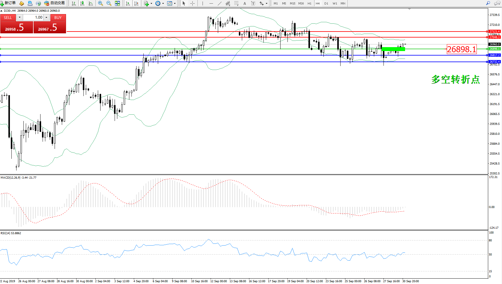 道琼斯指数9月30日(周一)收盘上涨96.60点,涨幅0.36%,报26916.83点。美国股市连续第三个季度收高,受助于苹果、微软和默克上涨,投资者评估贸易摩擦的最新变数。纽约联储模型上调对美国2019-2022年经济增速的预测,预计美国第四季度GDP增速为2.4%,此前预测为1.8%。投资者等待美国关键经济数据以及中美新一轮经贸磋商。