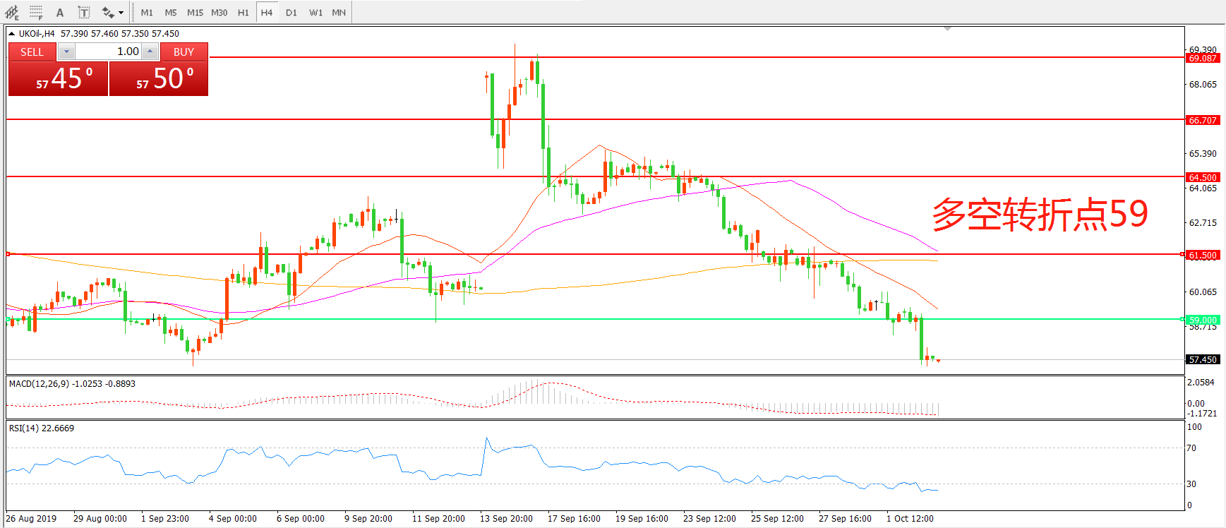 交易策略:在59.00之下看跌,目标57.00 55.00