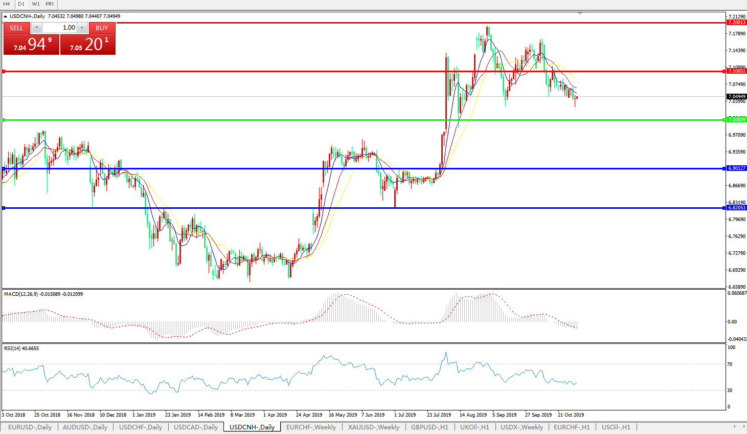 交易策略: 在7.0000之上,看涨,目标价位为7.1000,然后为7.2000。