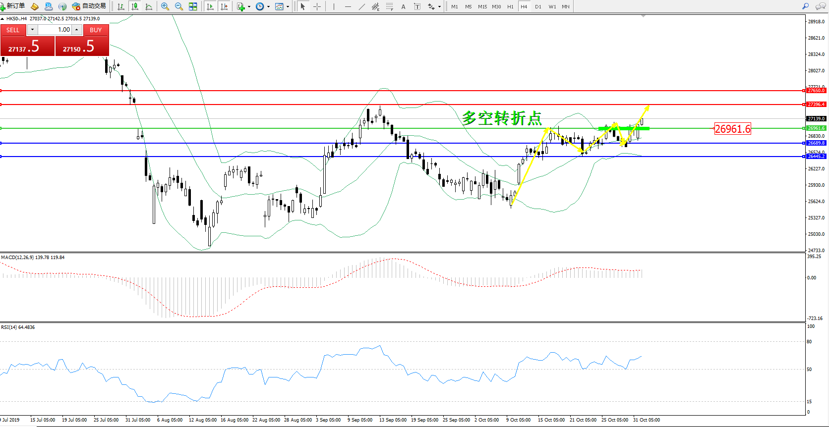 恒指HK50 ——4小时K线图显示: