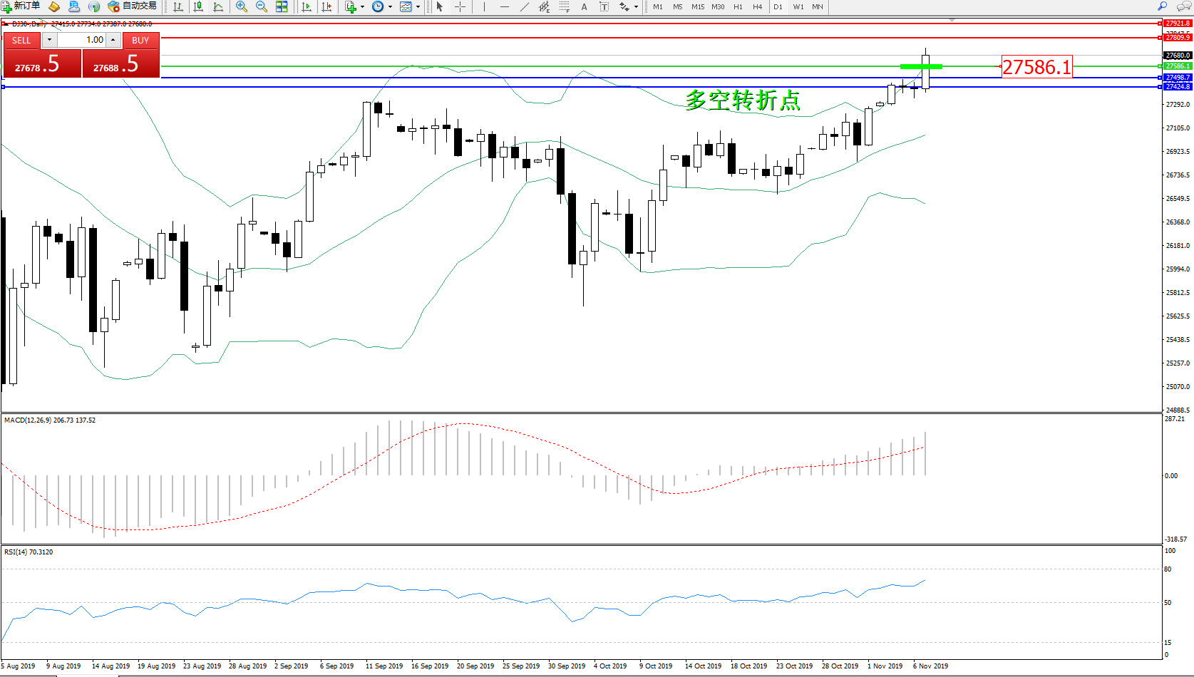 道琼斯指数117日(周四)收盘上涨182.20点,涨幅0.66%,报27674.80点。道指刷新收盘历史纪录,国际贸易局势出现积极进展,促使投资者抛售债券转入股市,市场处于全面冒险模式,中美之间达成贸易协议的可能性越来越大,这被认为对美国经济有利,因为它降低美国公司面临的不利因素。