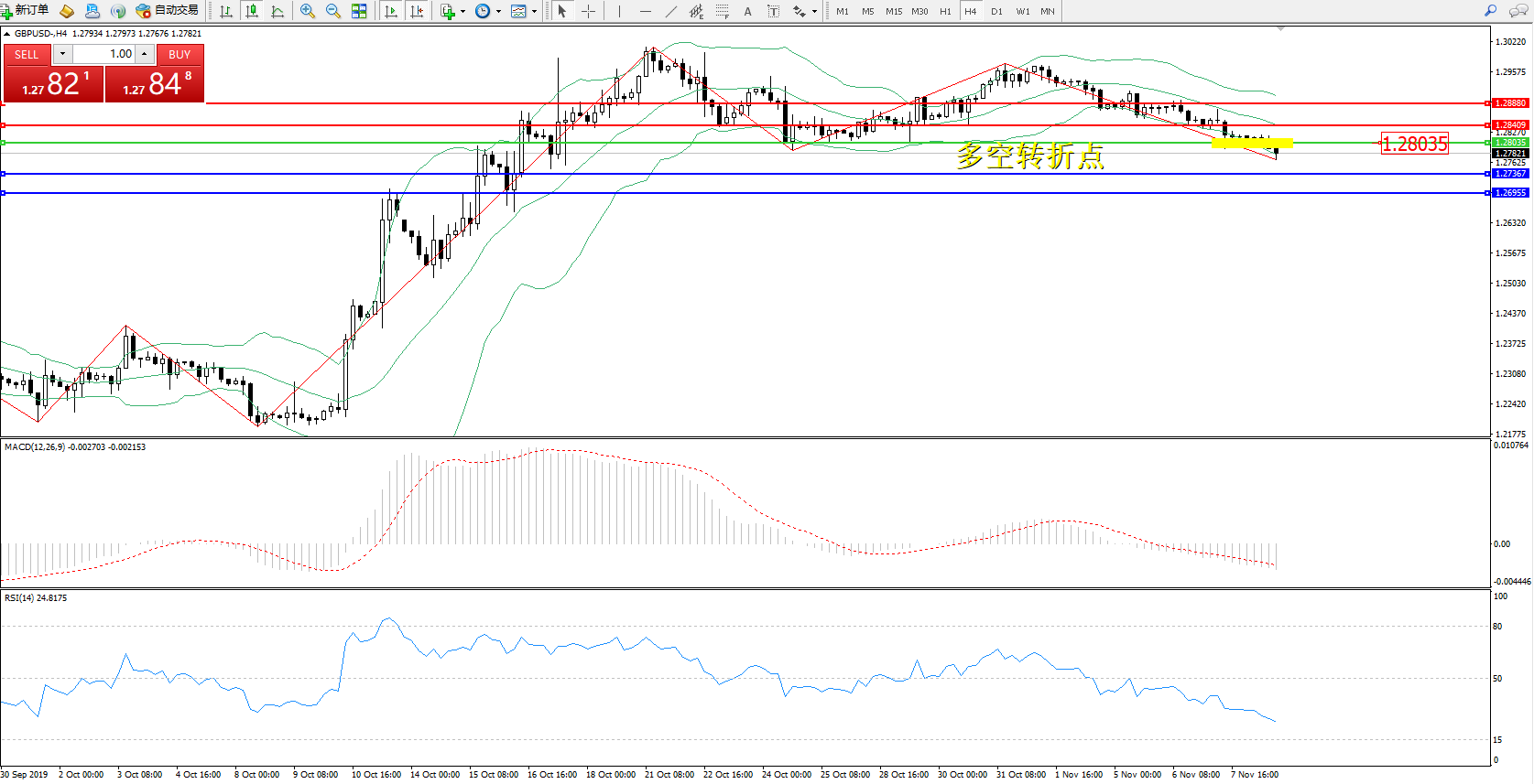 交易策略:1.28035下方看跌,目标1.273671.26955