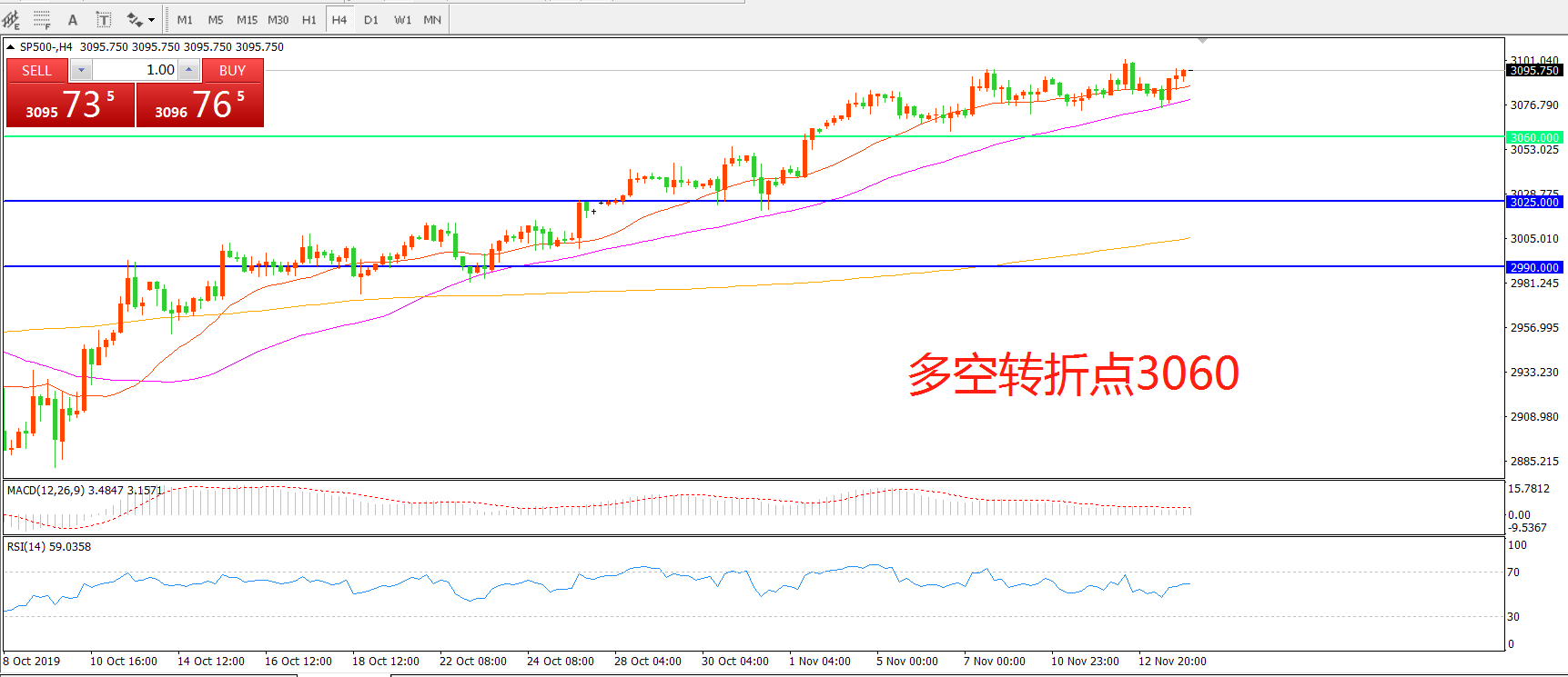 多空转折点:3060.00