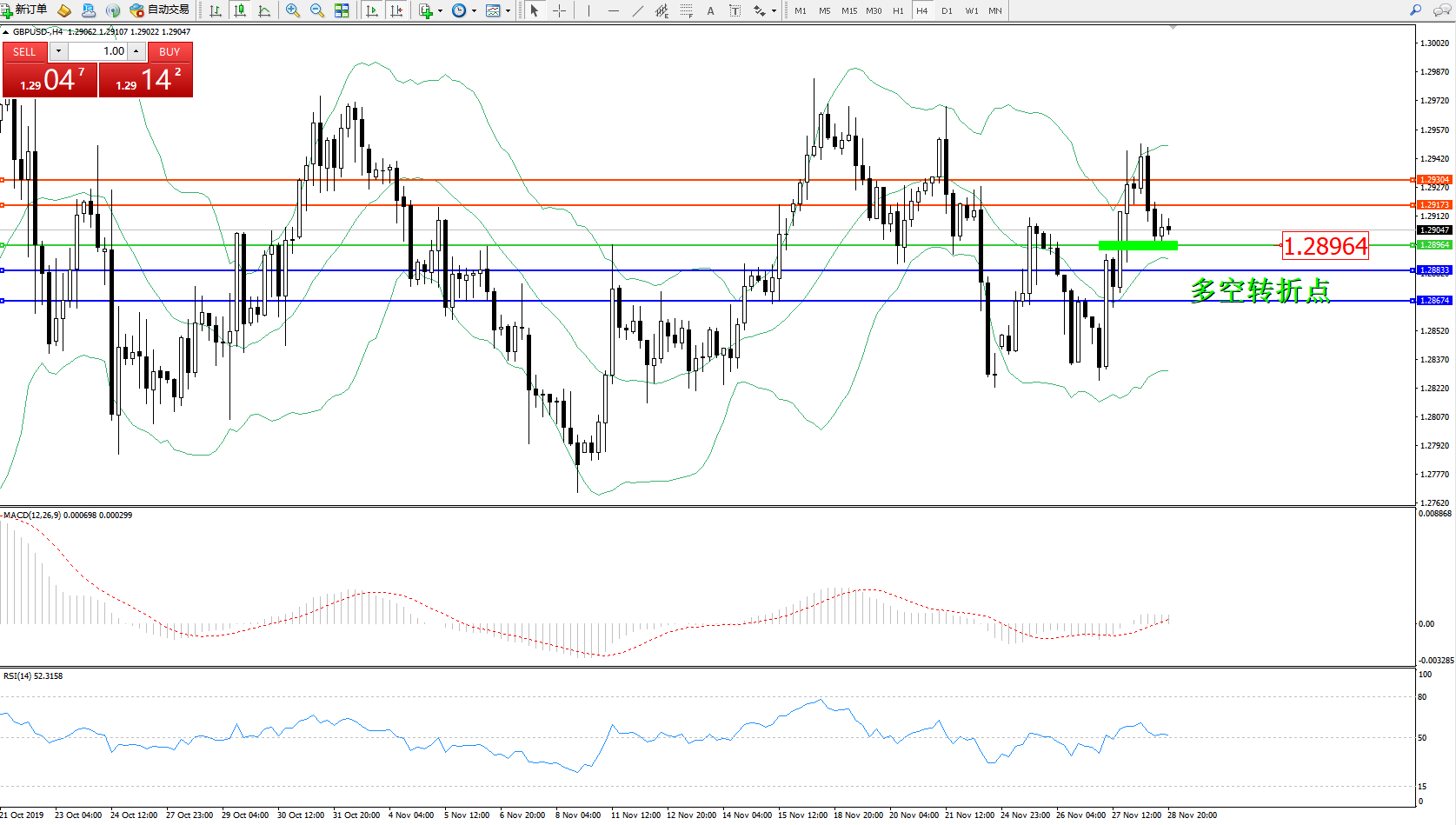 交易策略:1.28964上方看涨,目标1.29173、1.29304