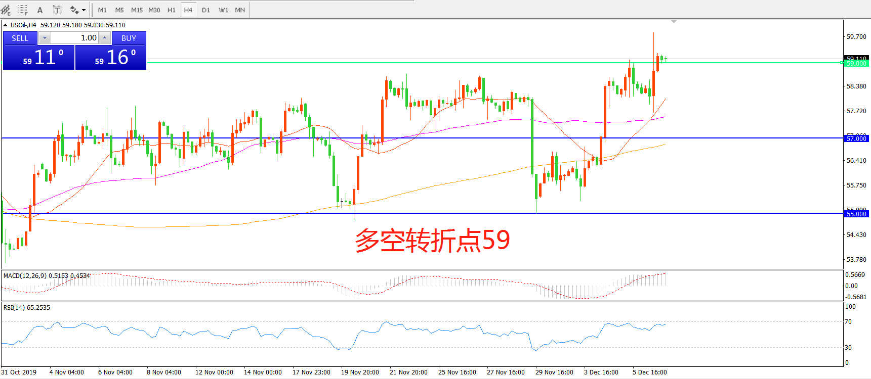 交易策略: 在59.00 之上看涨,目标62.00        65.00