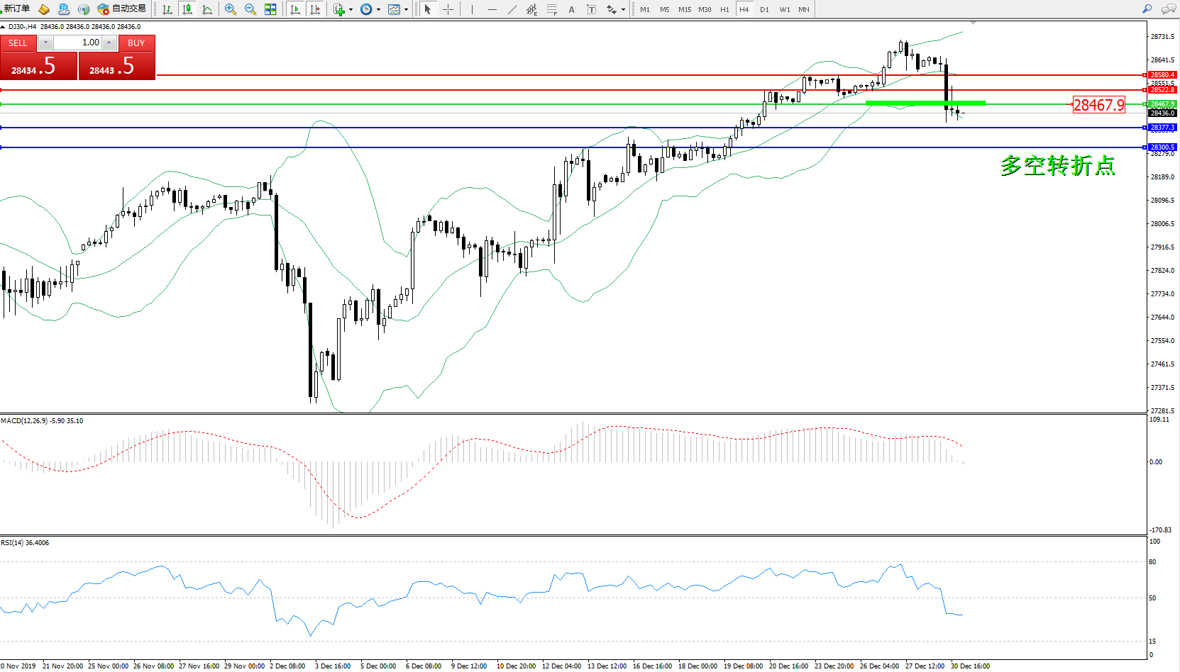 道琼斯指数1230日(周一)收盘下跌183.10点,跌幅0.64%,报28462.14点。美国股市在2019年辉煌一年的倒数第二天走低,市场交投淡静。投资者在假期前夕市场淡静之际谨慎行事。今年全球股市基准指数创下新高。此外,由于美联储处于按兵不动的状态,而且美国贸易谈判似乎距离新突破还很遥远,因此交易员可能仍然不愿重新投入高风险市场。