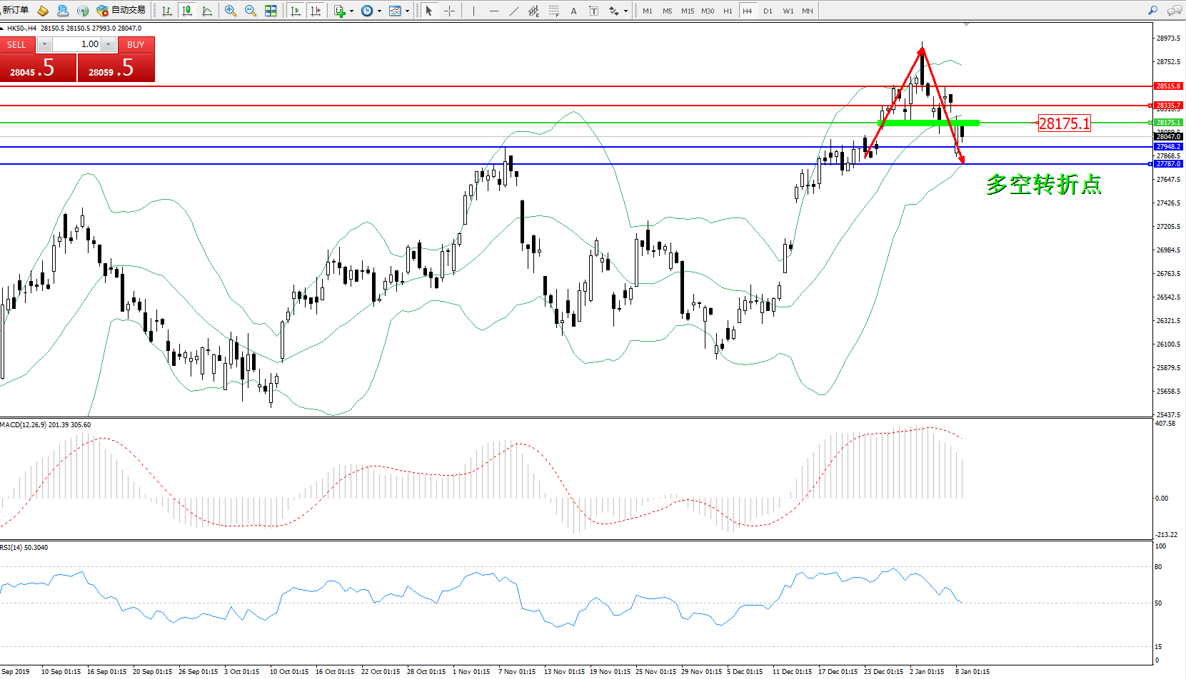 香港恒生指数1月8日(周三)收盘下跌234.14点,跌幅0.83%,报28087.92点;由于外围早上传出伊朗火箭弹袭击美军基地,刺激金价及油价急升。唯拖累港股大幅低开332点,实时失守28000,并扩大跌幅,恒指低见27857点。现外围地缘性政治局势升级引发市场避险观望,局部战争令市场蒙上阴影,料港股短期震荡为主。当下阶段流动性宽松是最大的利好。此外,大家都翘首企盼的春节大礼包即将搬出最后的重头戏,市场会依然维持着上升动力。