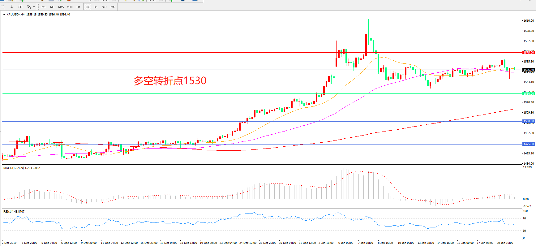 周二(1月21日)全球股市因对中国新型冠状病毒疫情加剧的担忧而下跌,黄金作为避险资产获得了一些支撑,先涨后跌,最终收报1556.80美元/盎司。在低利率环境和持续的地缘政治紧张局势支撑下,金价中期走势仍然看多。