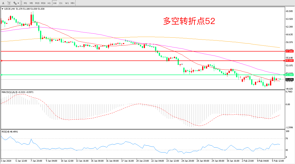 周三(2月5日),因疫情事件引发对需求的担忧有所缓解,且OPEC+考虑深化减产,美油自低位反弹,收报51.18美元/桶。据报道,OPEC及其盟国正在考虑于2月14日至15日举行紧急部长级会议,目前该组织正在举行技术会议以了解病毒的影响和提出建议,但在全球需求放缓,EIA库存增幅超预期的背景下,油价反弹高度仍然有限。