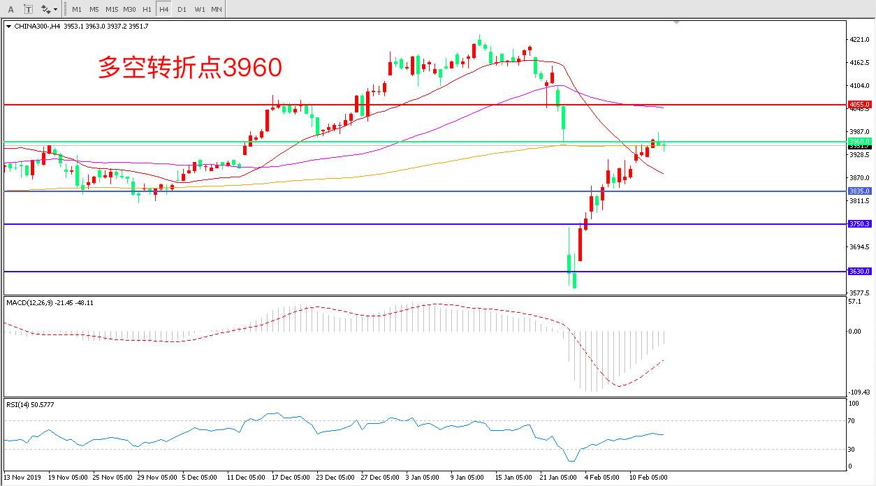 4小时图看,沪深300冲高回落,涨势有暂缓迹象,3960依然是短期多空分水岭,均线系统走平,MACD绿柱缩短,RSI指标走平,近期延续上行概率较大。