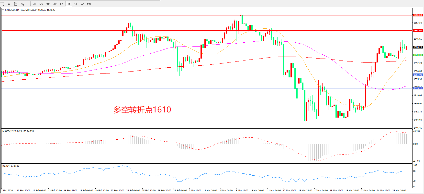 交易策略:在1610.00之上看涨,目标1665.00 1700.00