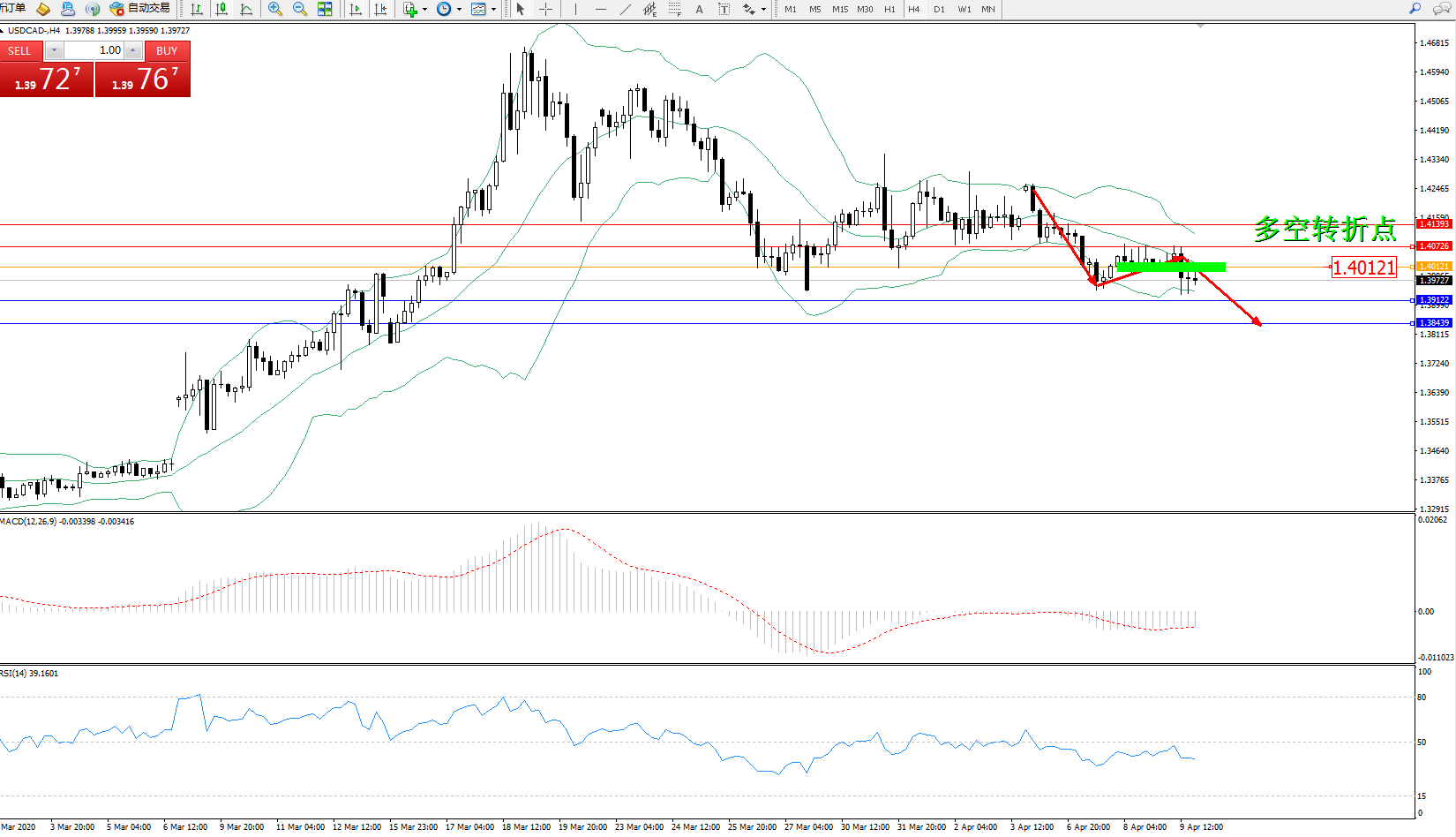 美元加元USDCAD——4小时K线图显示: