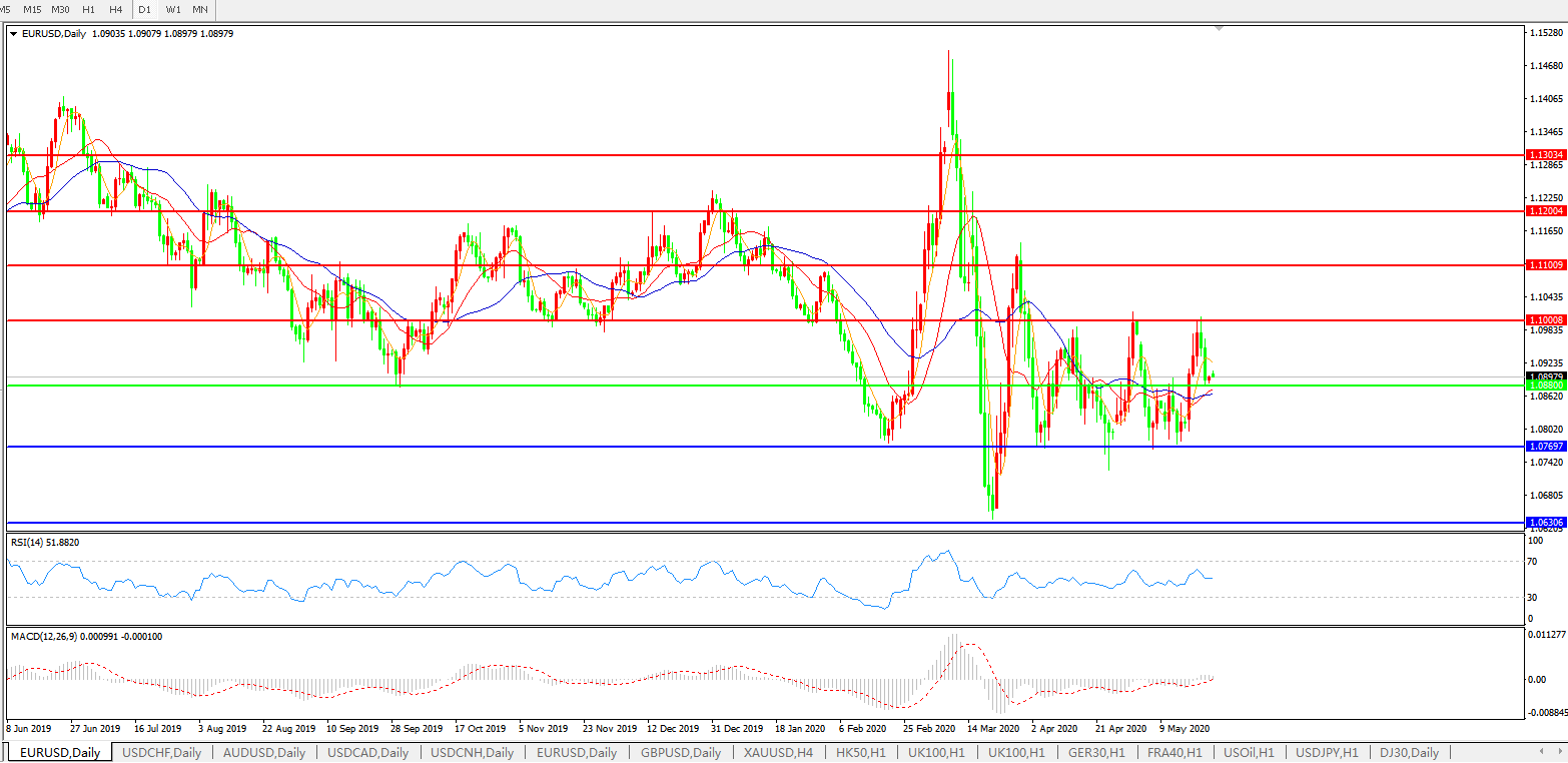 对于疫苗研发的乐观态度、油价反弹以及德法提出的欧盟复苏基金在最近几天都提振了风险偏好,只要这三个因素一直保持向好,美元就可能继续承压;此外,未来几天即将公布的“可能很差”的经济数据料会给美元带来额外的压力,预计未来几日欧元将因美元走软而受益;预计到第二季度末欧元兑美元的目标价为1.10。