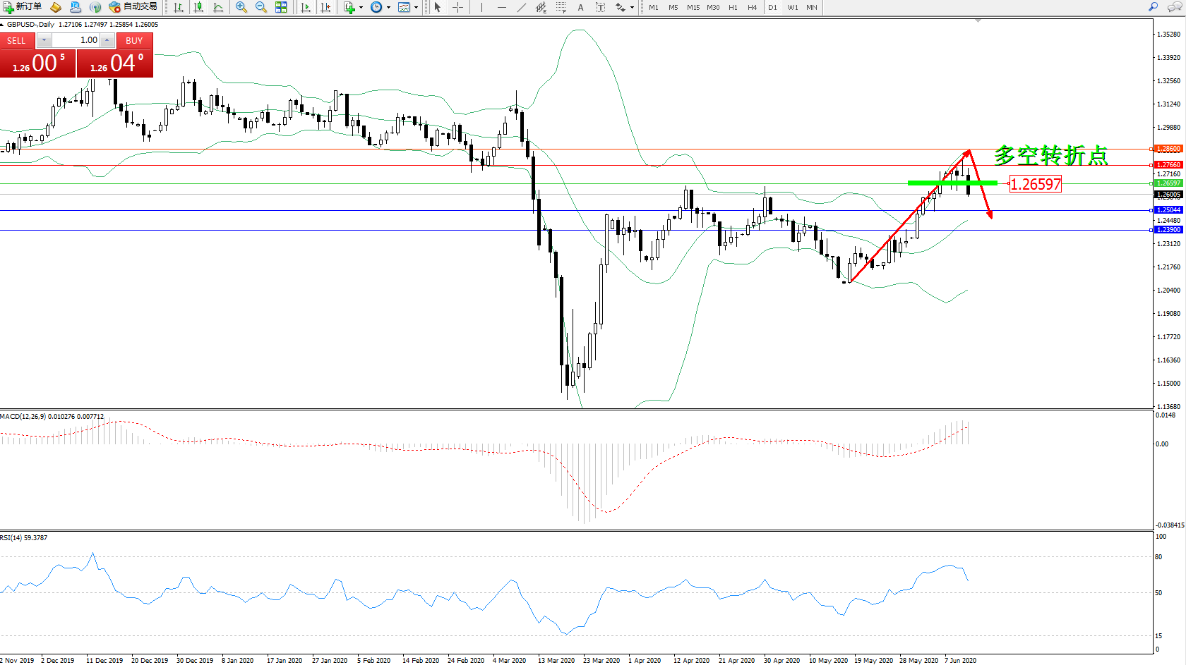 交易策略:1.26597下方看跌,目标1.250441.23900