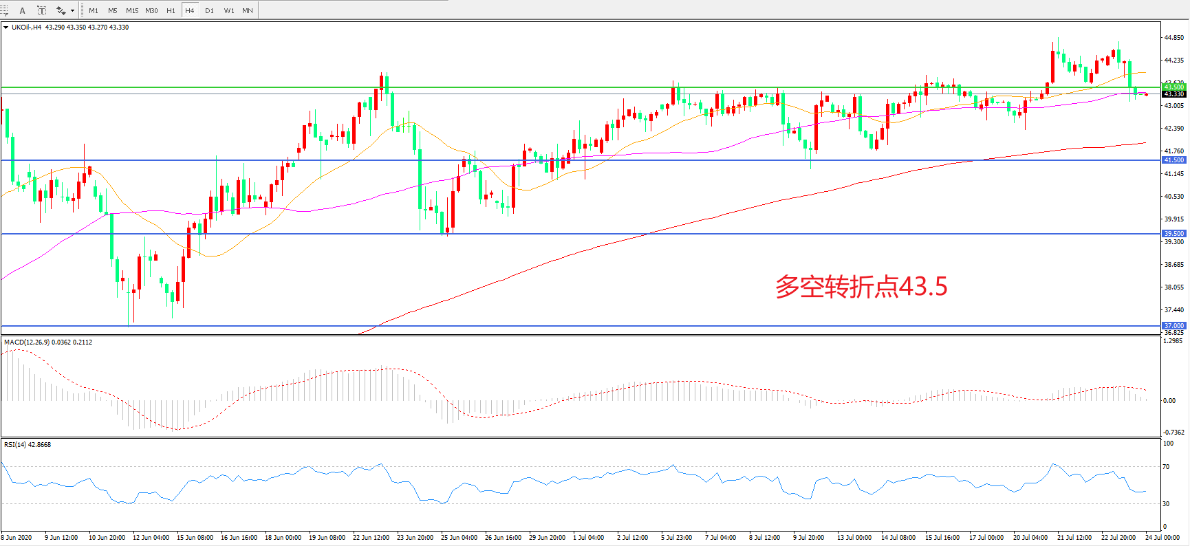 周四(7月23日),美国初请失业金人数的大幅增加,导致了人们对经济复苏的担忧,市场风险情绪回落,布伦特原油大幅下挫,收报43.34美元/桶。新冠疫情的肆虐阻碍了美国夏季驾车高峰期通常需求的复苏,但鉴于美国成品油的产量尚未出现进一步下降,未来几周美国的需求增长速度可能有所改善。