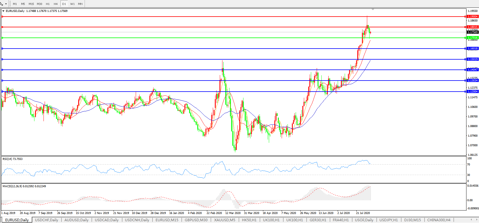 交易策略:1.1700上方看涨,目标1.1800、1.1900