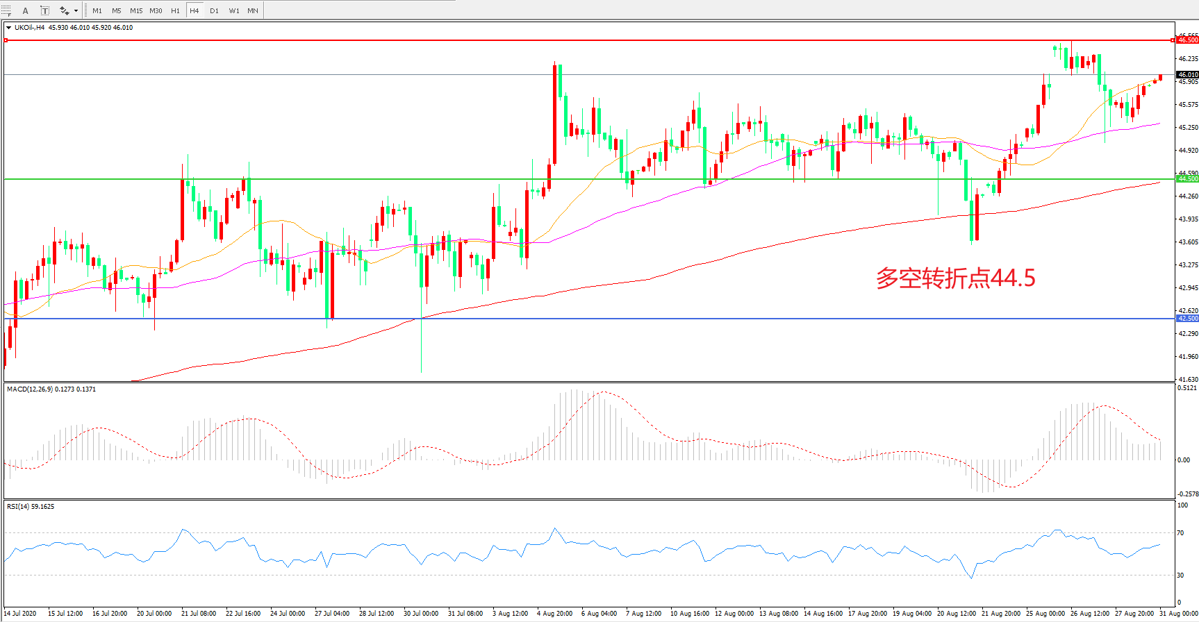 交易策略: 在44.50之上看涨,目标46.50 48.00