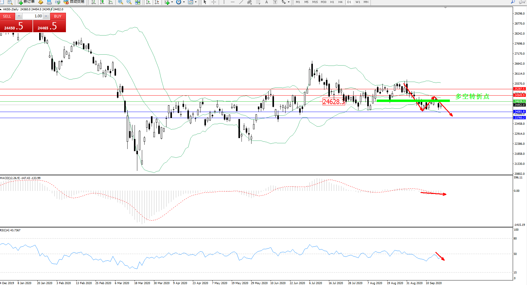 技术点评:长时间维持在布林带指标通道内持续宽幅震荡平移,高位空头动力弱势震荡回撤至布林带指标下轨附近持续徘徊中,空头动力处于下轨内侧h后开始缓慢回升,布林带指标呈张口走势后持续收口中,关注中下轨区间节点,MACD指标弱势徘徊于0轴线后终究破位进入空头区域徘徊,RSI指标处于50均衡线下方弱势震荡向下移动后有回升迹象后再次下移;