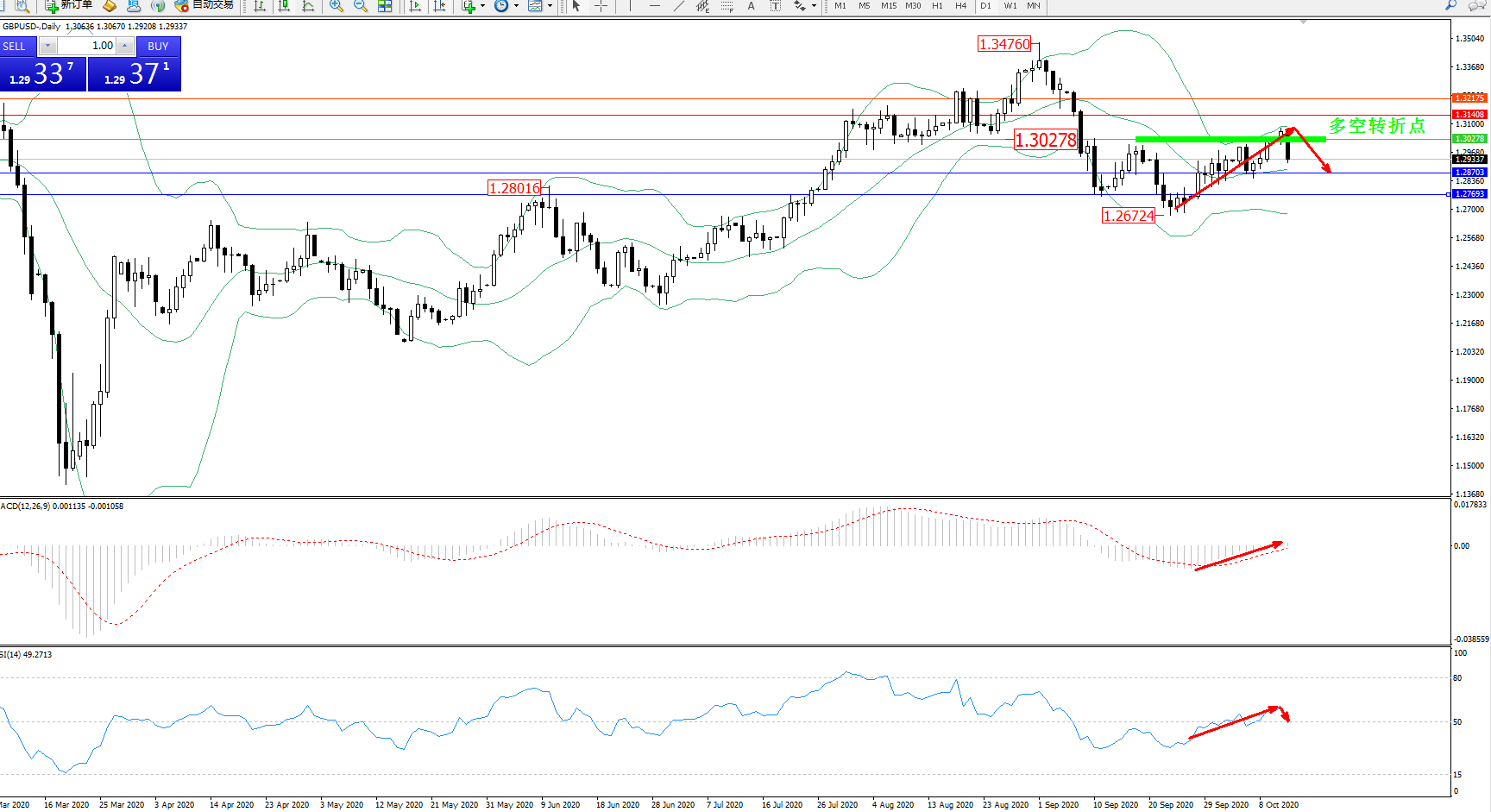 交易策略:1.30278上方看涨,目标1.31408、1.32175