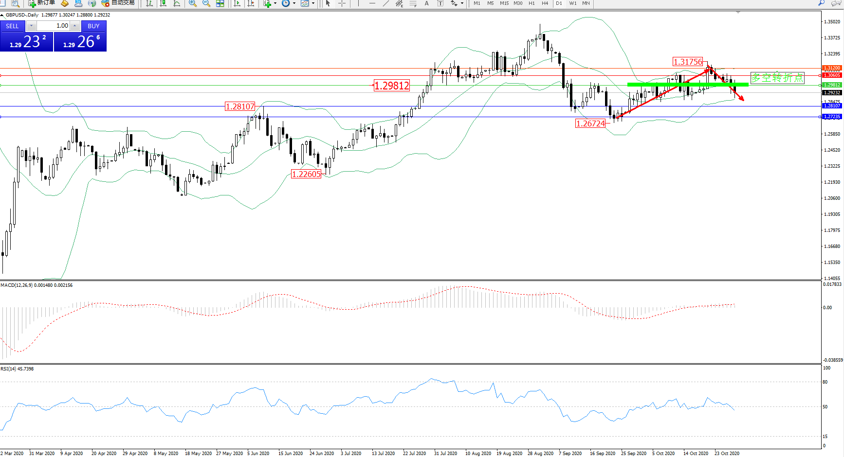 备选策略:1.29812上方看涨,目标1.30605、1.31200