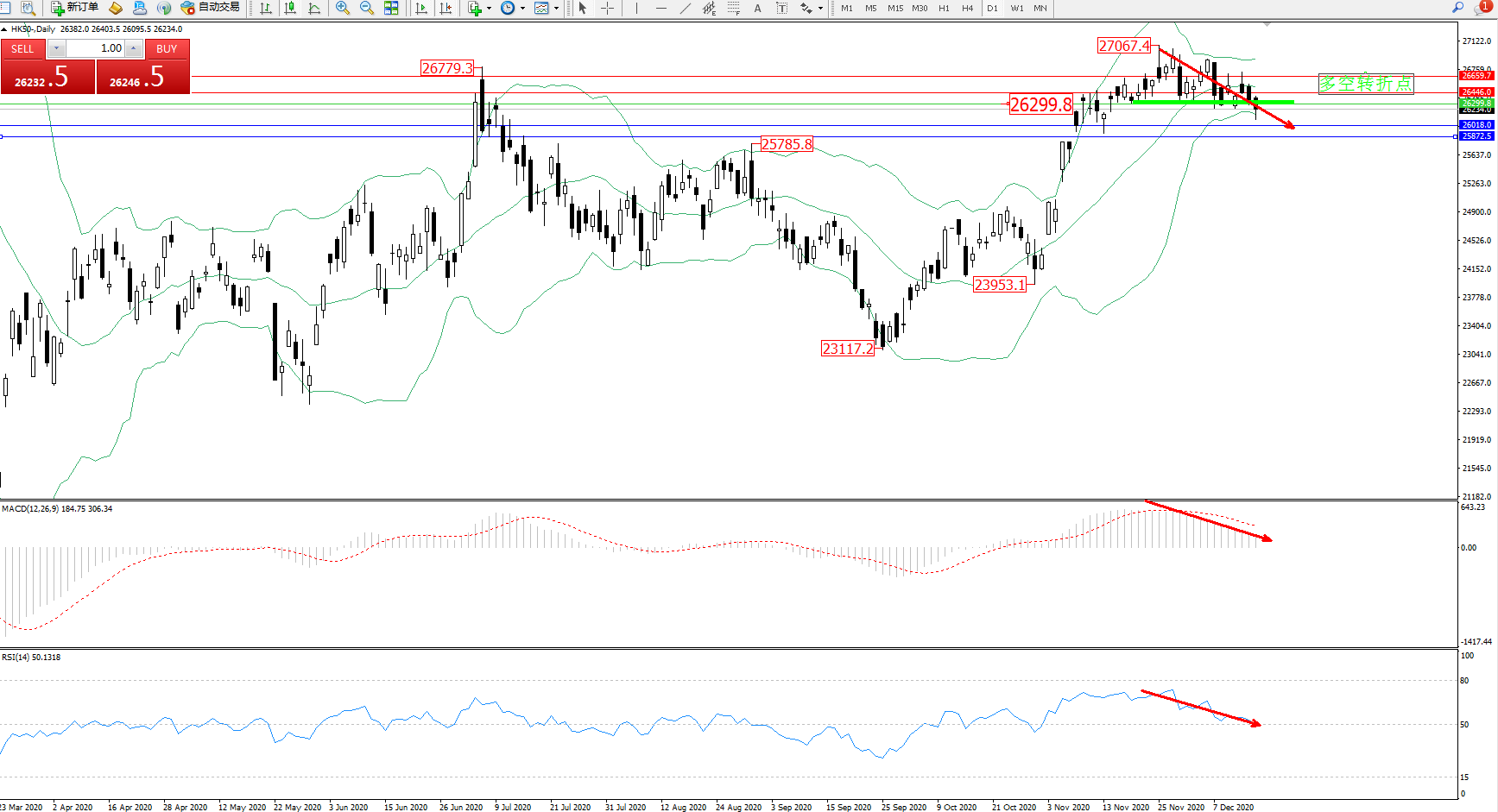 技术点评:高位空头动力处于布林带指标通道内中下轨区间弱势窄幅震荡向下移动走势中,触及下轨附近节点后有继续下行态势,布林带指标呈收口走势后开始有张口迹象,高位空头下行动力或将延续跌势,MACD 指标处于多头区域高位弱势整理缓慢下行中,RSI指标处于多头区域阶梯式震荡回撤至50均衡线附近整理,有继续下破进入空头区域迹象;