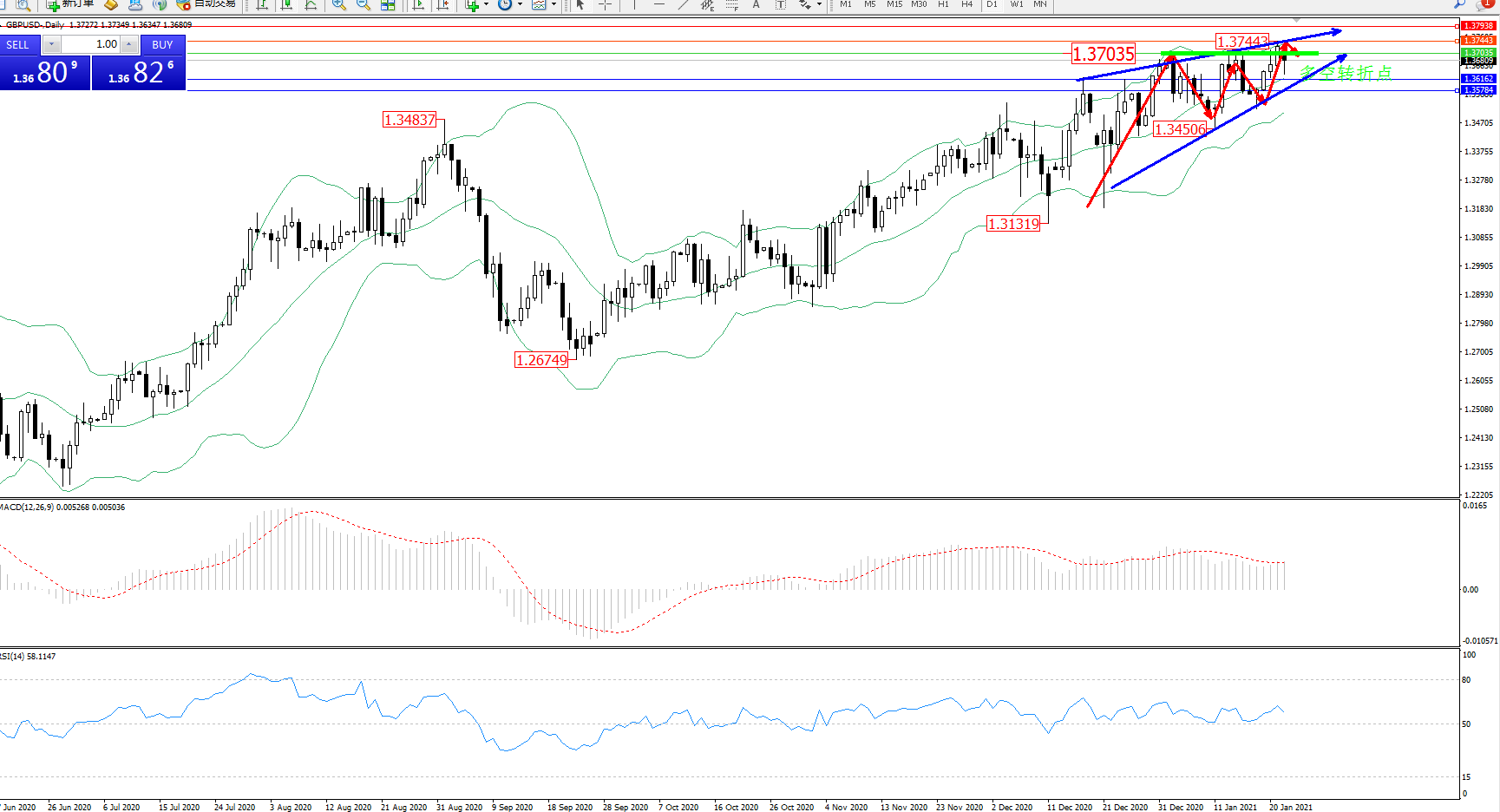 交易策略:1.37035下方看跌,目标1.36162、1.35784