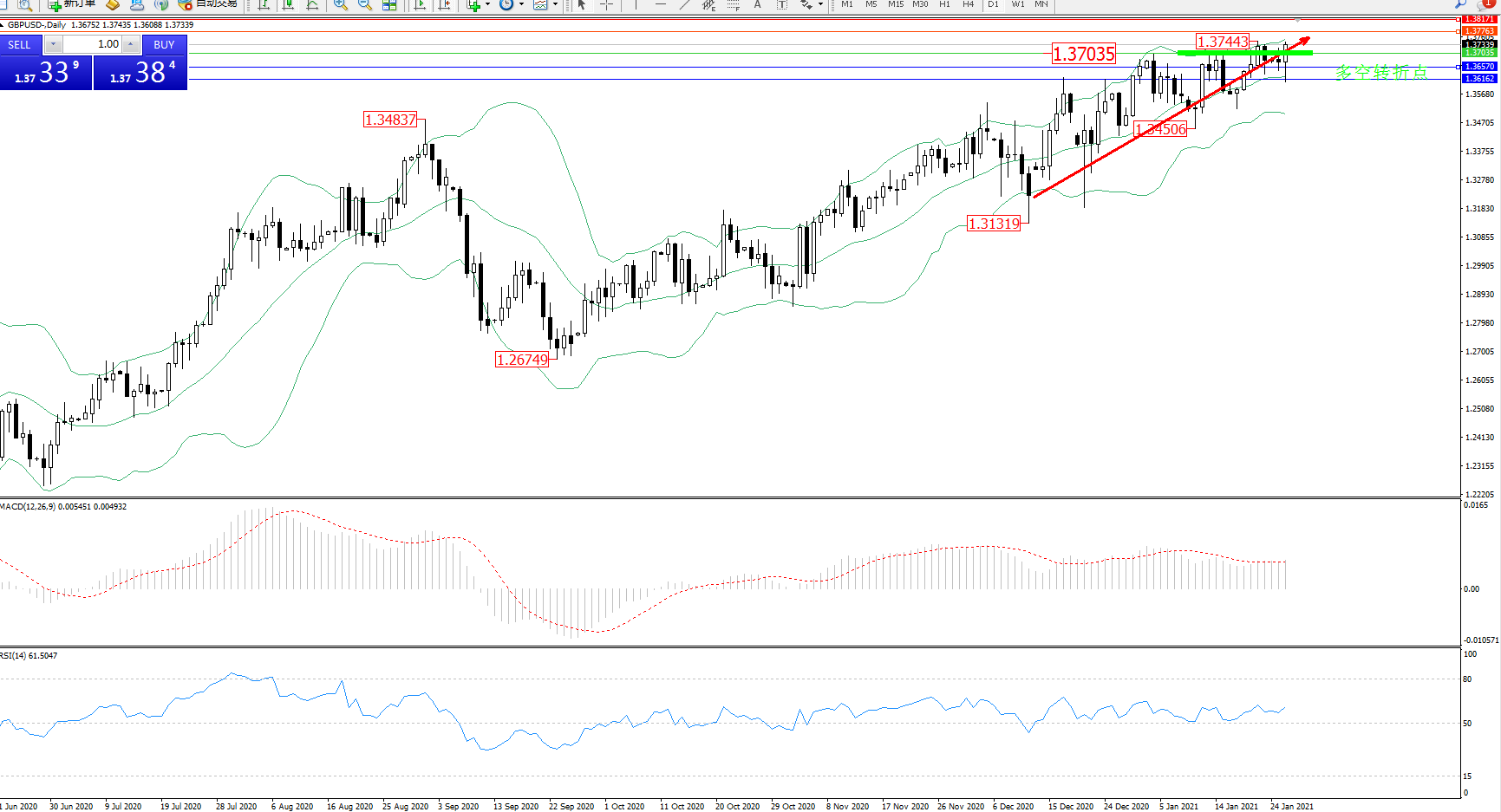 交易策略:1.37035上方看涨,目标1.37763、1.38171