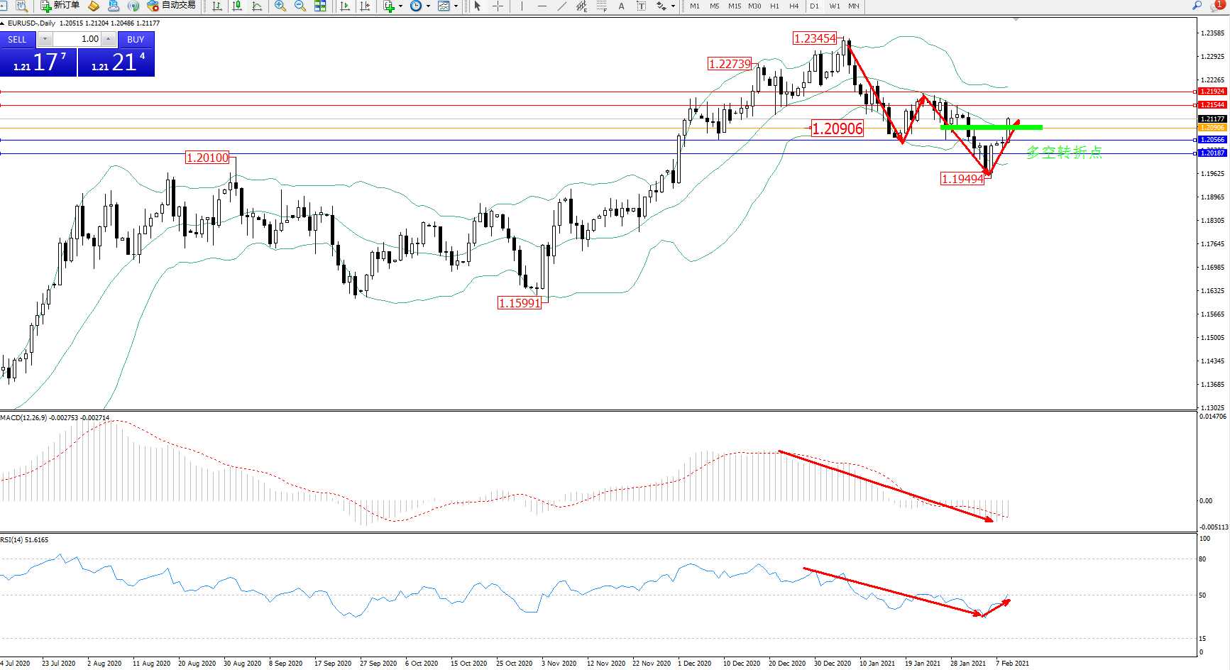 交易策略:1.20906上方看涨,目标1.21544、1.21924