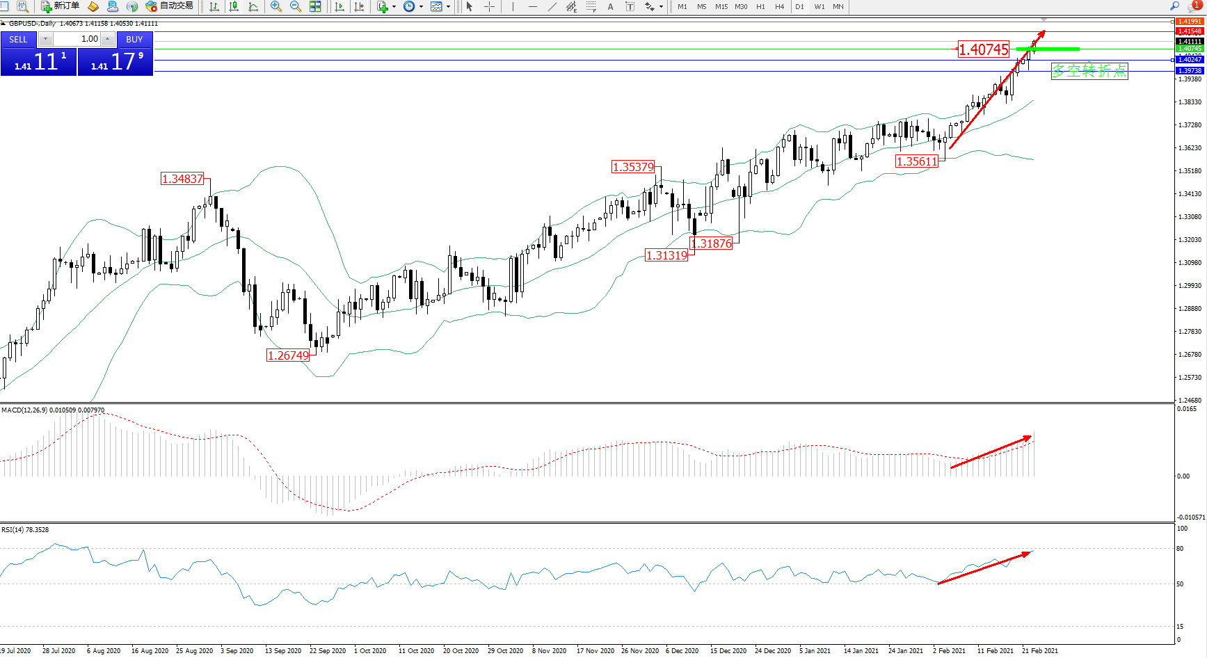 交易策略:1.40745上方看涨,目标1.41548、1.41991