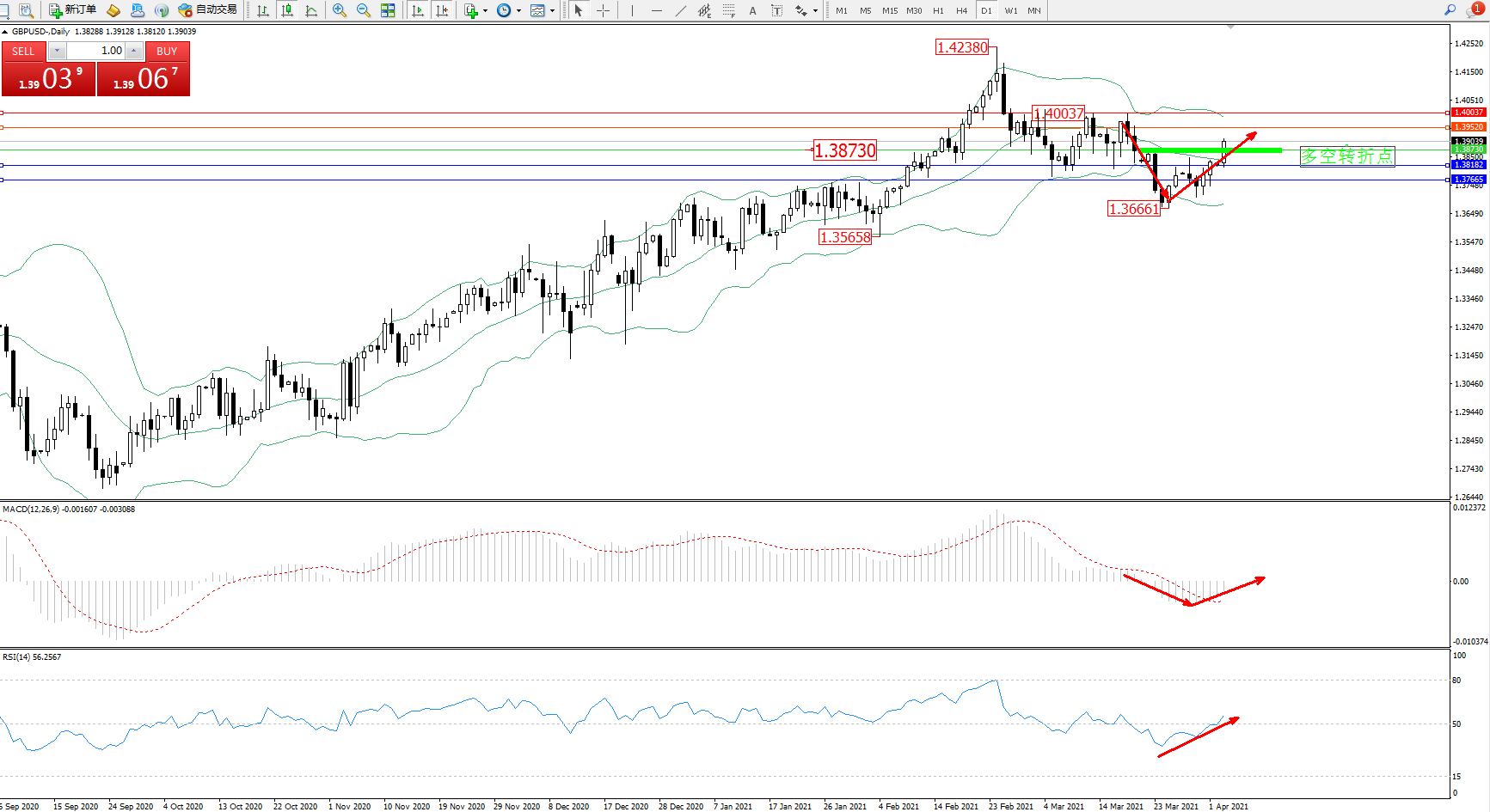 交易策略:1.38730上方看涨,目标1.39520、1.40037