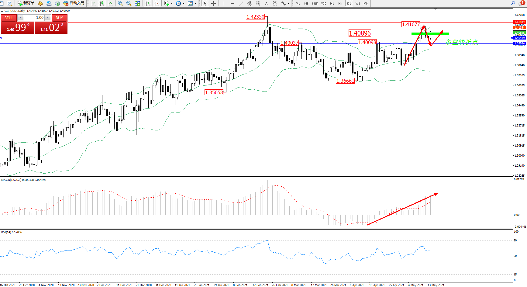 交易策略:1.40896上方看涨,目标1.41354、1.41839