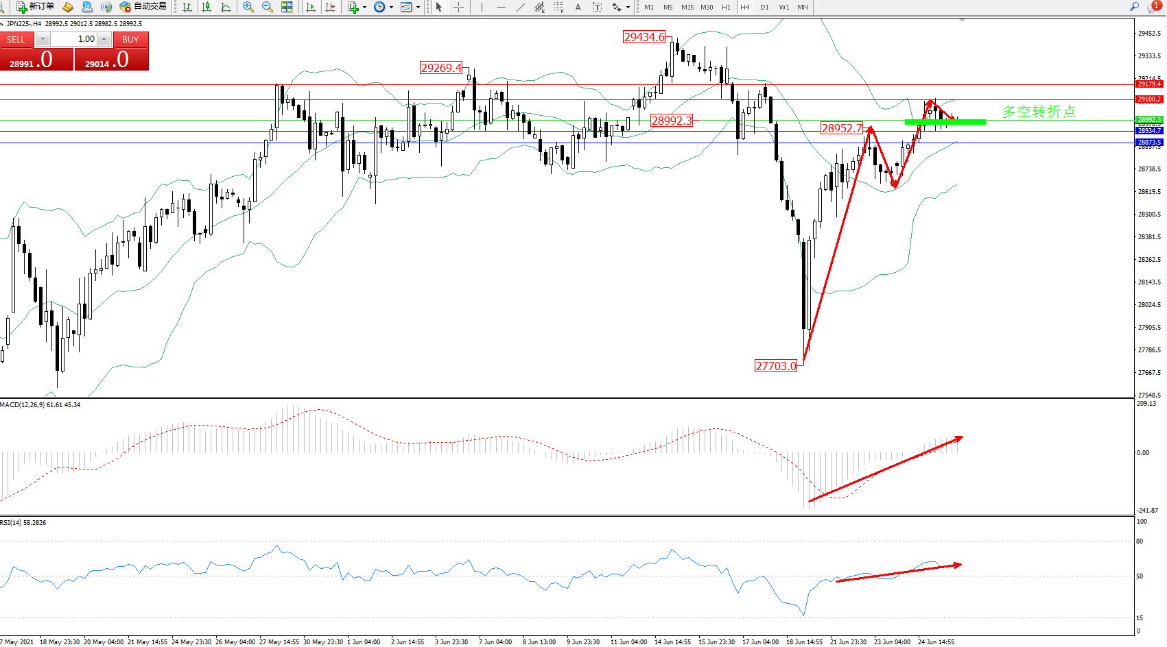 日经225指数6月25日(周五)收盘上涨187.77点,涨幅0.65%,报29063.00点。日本厚生劳动大臣田村宪久表示,在东京解除紧急事态宣言之后,夜间活动人员比从前有所增加,新冠病毒感染情况有扩大的可能。田村宪久指出,日本目前的新冠疫苗接种尚未普及到大多数人口,如果有感染扩大的可能性,或会考虑再次发布紧急事态宣言。