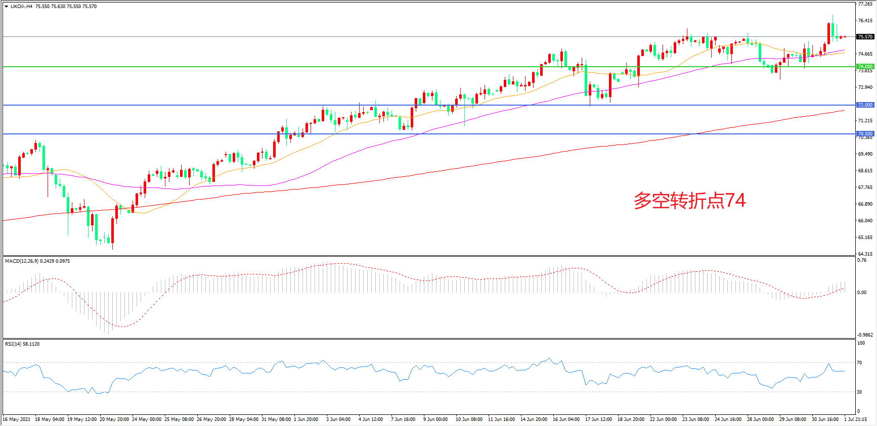 多空转折点:74.00