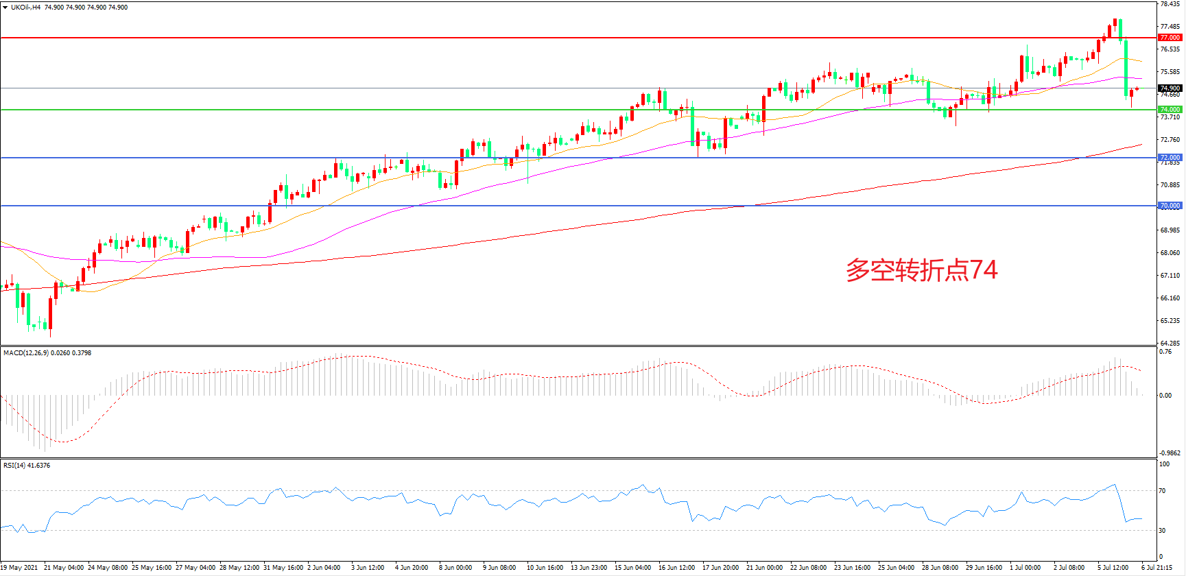 多空转折点:74.00