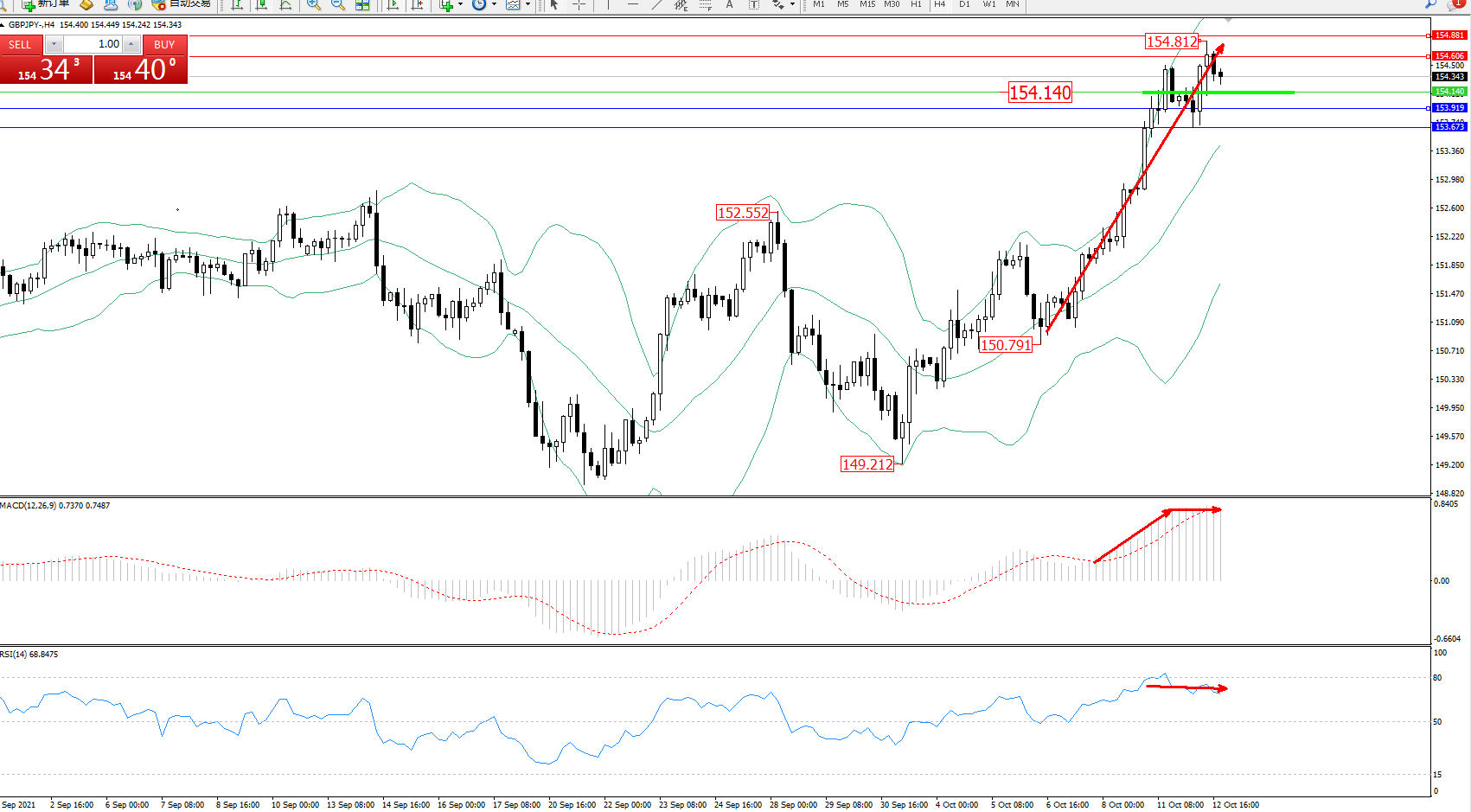 技术点评:多头动力延续布林带指标上轨附近持续震荡上扬,高位抵达154.812位置后开始短暂整理,多头动力有进一步拉升态势,短期多头开始高位调整,布林带指标呈收口走势持续拉升中,MACD指标处于多头区域高位整理平移,RSI指标处于多头区域触及80均衡线后开始缓慢回撤下移;