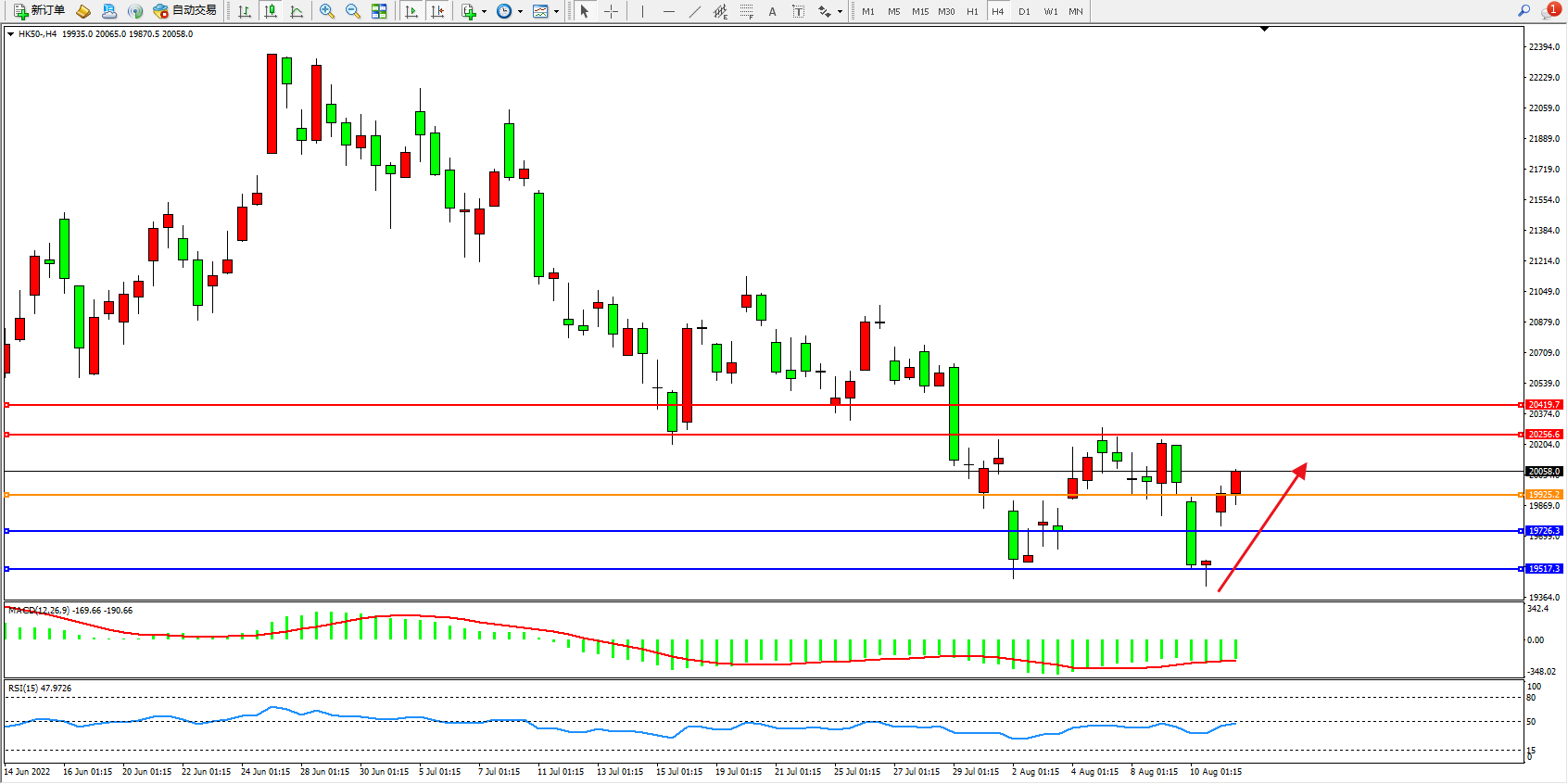 香港恒生指数8月11日(周四)收盘上涨471.59点,涨幅2.4%,报20082.43点;美国通胀放缓加息预期或降温,全球风险偏好上升,金融市场造好。港股全天维持强势行情,三大指数午后涨幅进一步扩大,恒指涨2.4%重上2万点,国指、恒生科技指数分别涨2.7%及3.67%。大金融股(中资券商股、内银股、内险股)午后涨幅扩大,光大证券领衔上涨。