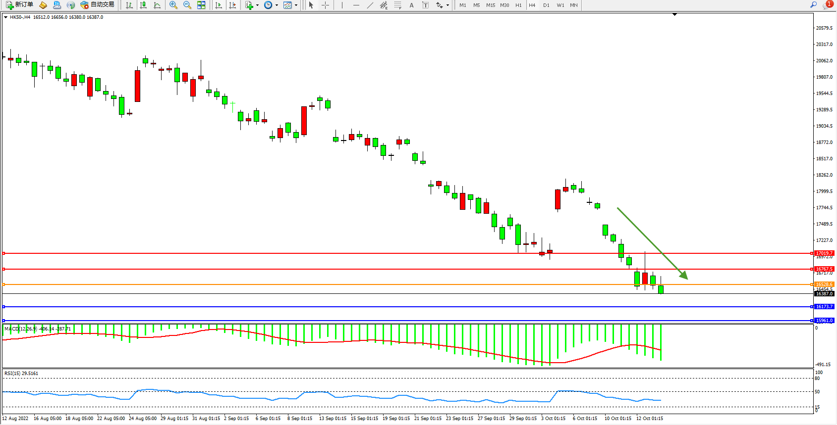 香港恒生指数10月13日(周四)收盘下跌311.92点,跌幅1.87%,报16389.11点;港股再度大跌,国指跌2.31%,恒生科技指数跌3.42%,三者均录得6连跌且再度刷新调整低价。作为市场风向标的大型科技股持续低迷,京东、快手、百度、网易均跌超4%,港府考虑有条件放宽非居民买楼15%税率,香港本地地产股午后拉升明显。今日南下资金逆势净流入56.96亿港元,大市成交额为849亿港元。