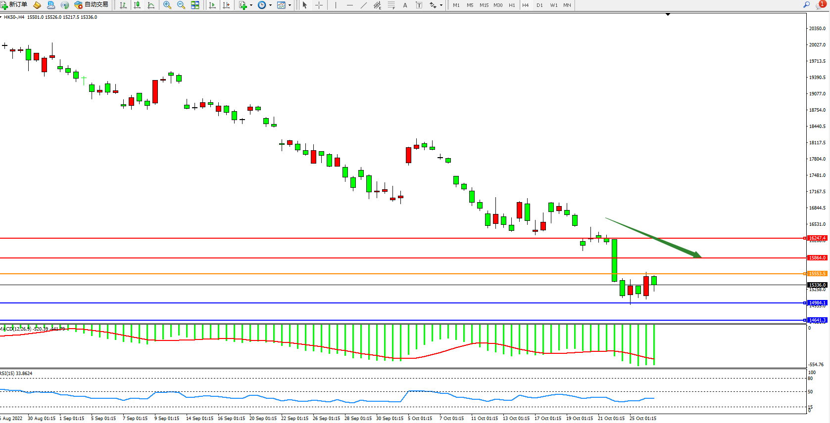 恒指HK50 4小时图