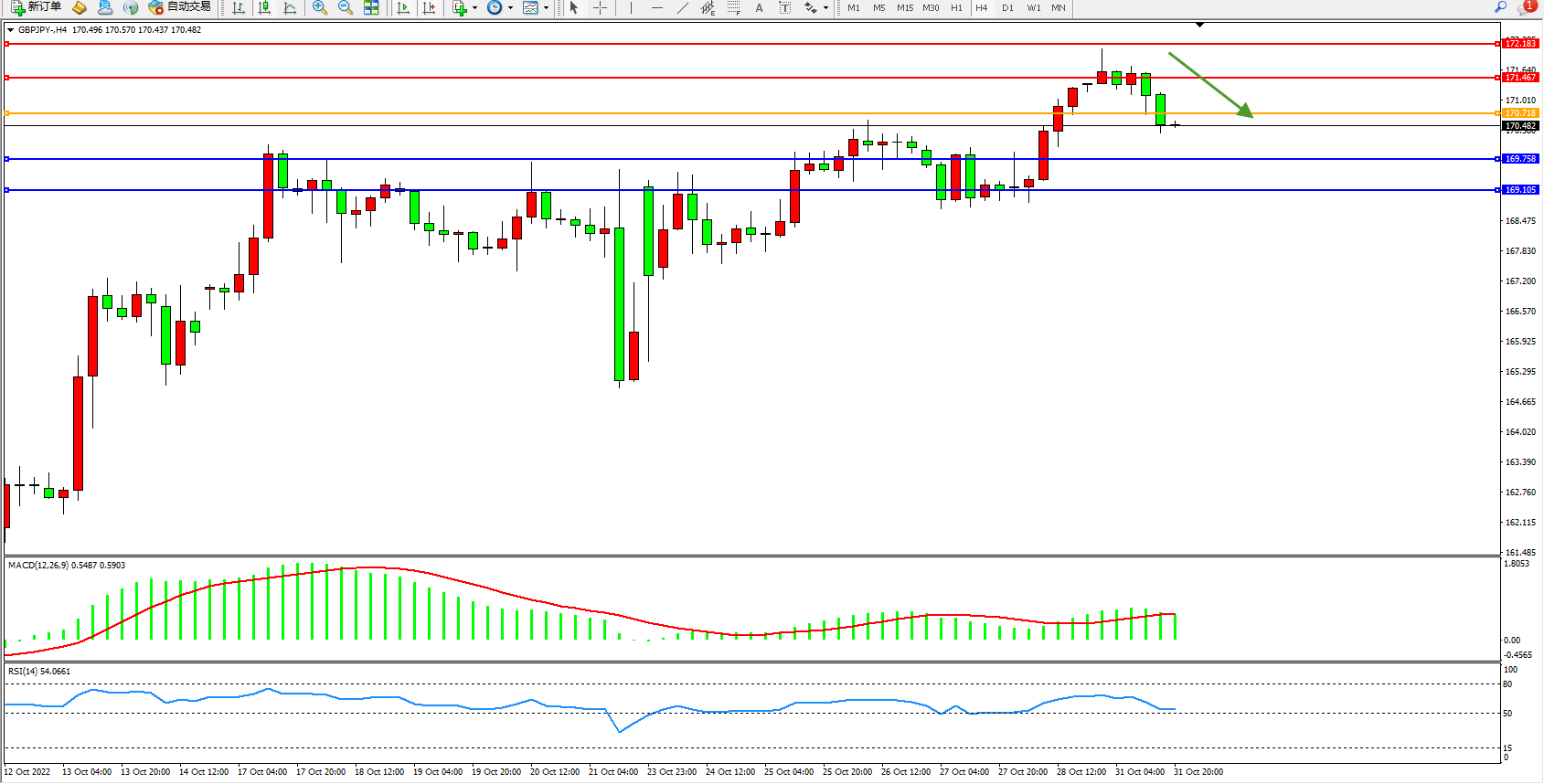 英镑兑日圆维持170.482附近震荡,英国隔夜指数掉期利率(OIS)市场预测,英国央行本周加息75个基点的几率为98%,加息100个基点的几率为2%。