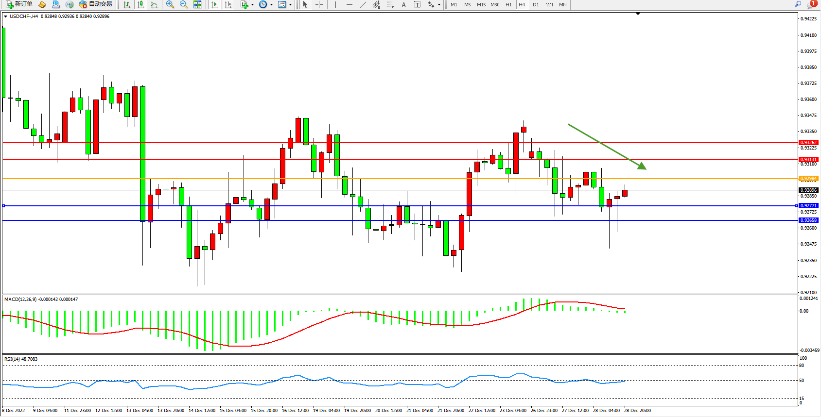 交易策略:0.92984下方看跌,目标0.92771、0.92658