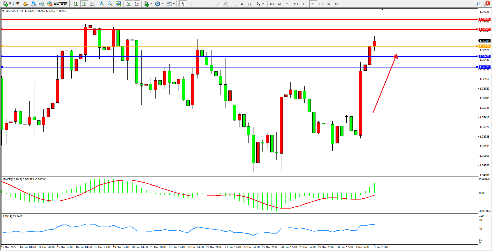 交易策略:1.36624上方看涨,目标1.36865、1.37006