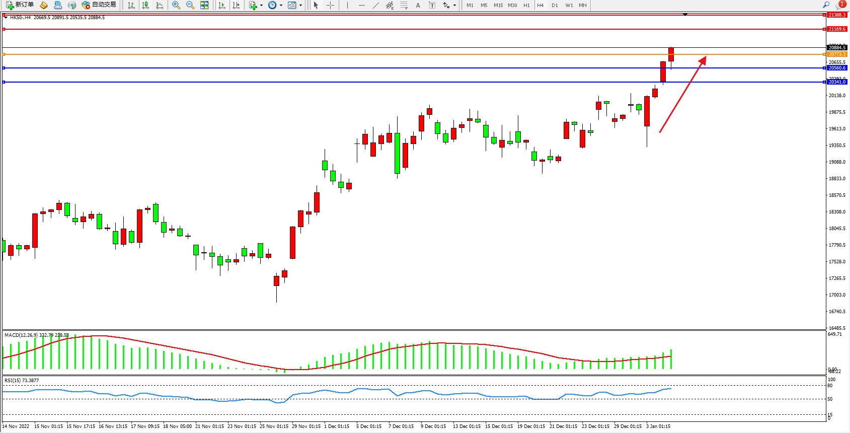 恒指HK50 4小时图