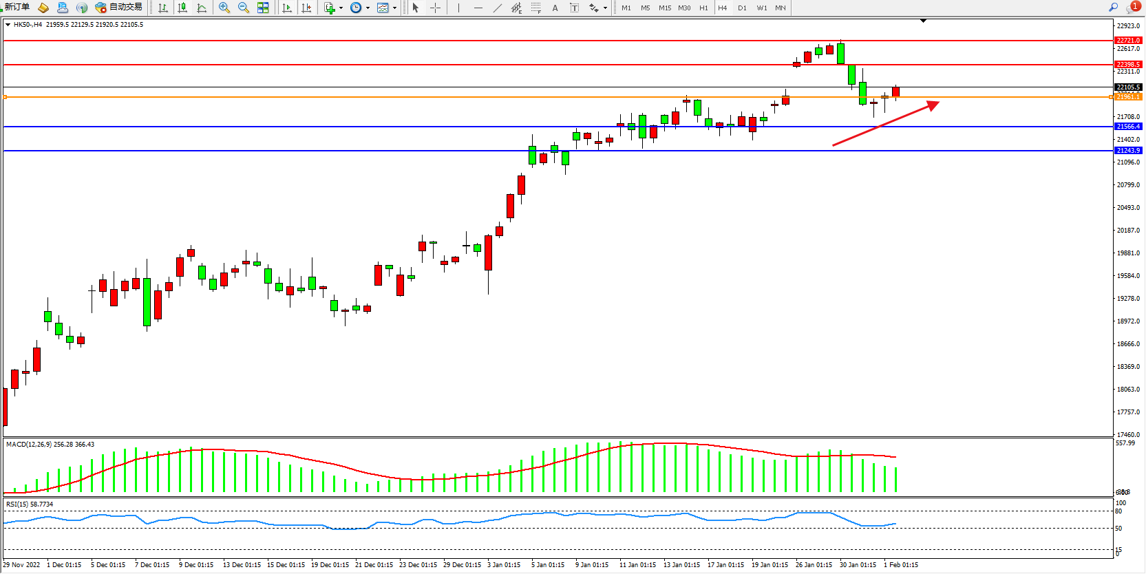 恒指HK50 4小时图