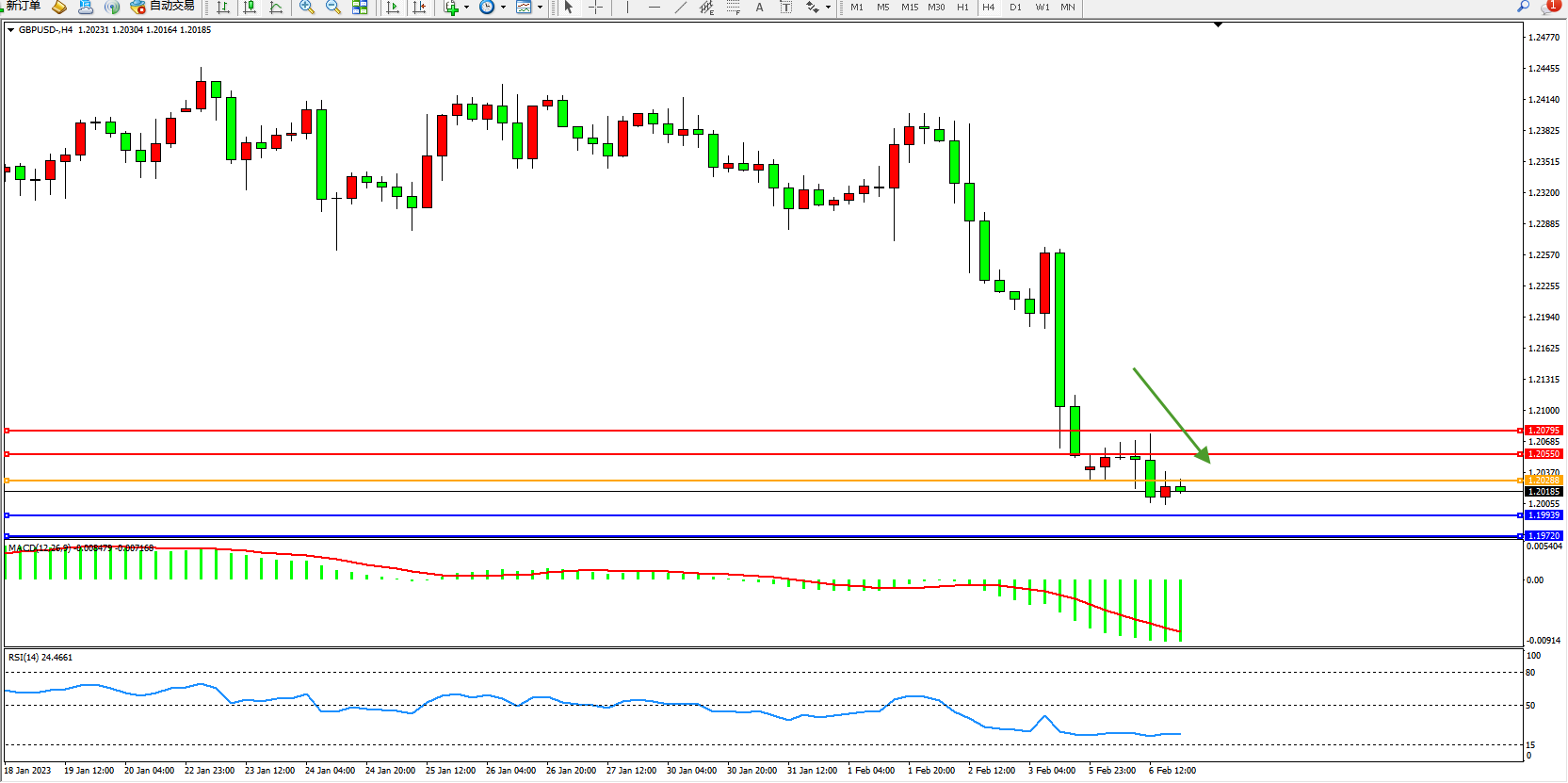 英镑美元GBPUSD ——4小时K线图显示: