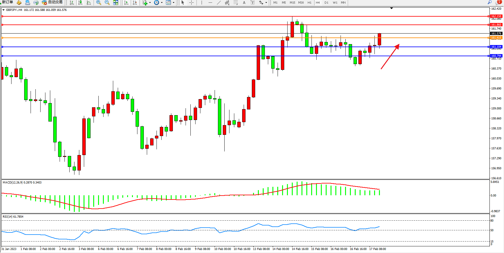 交易策略:161.415上方看涨,目标161.860、162.150